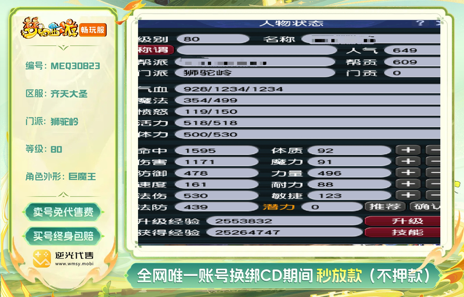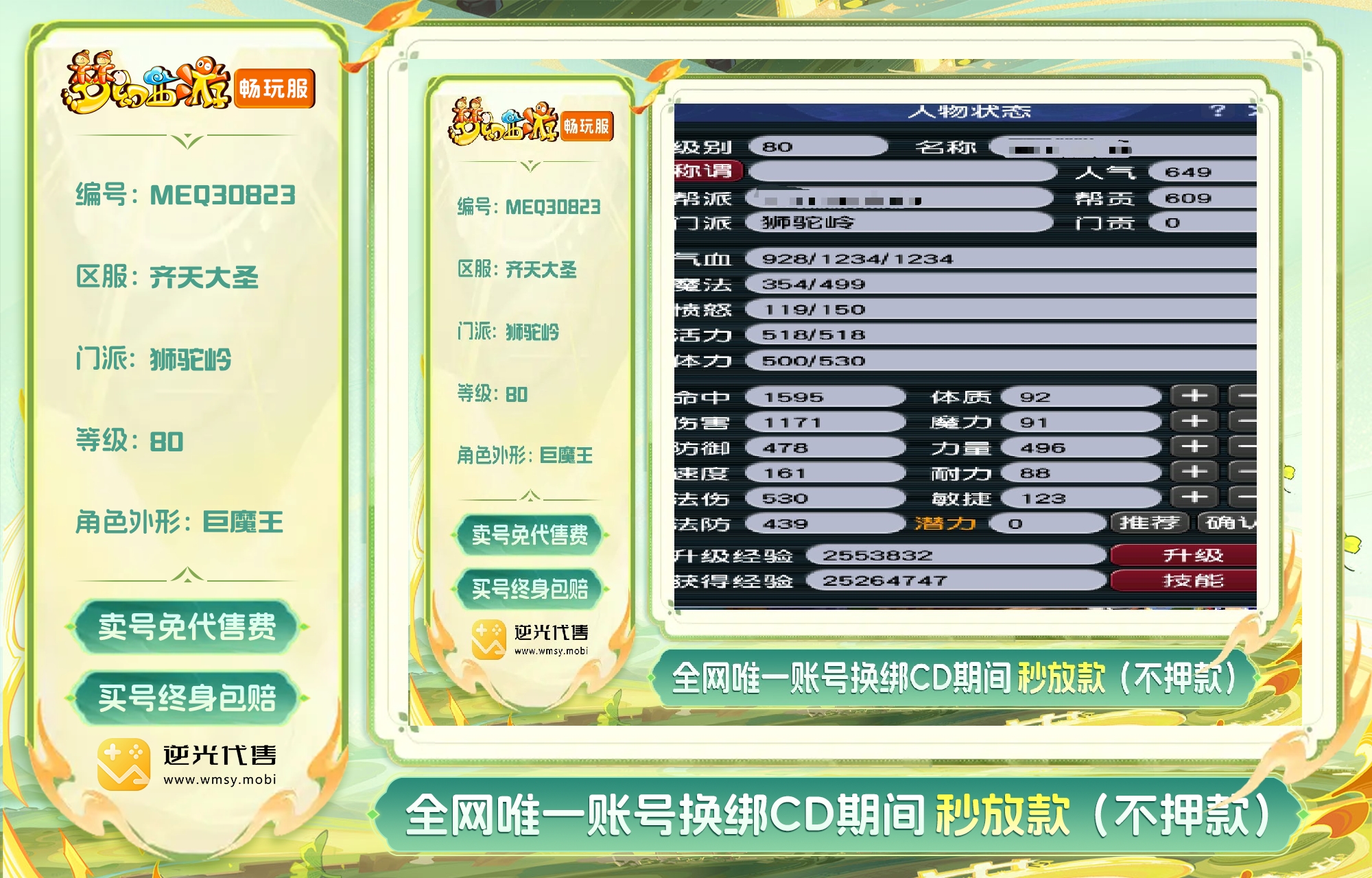 【MEQ30823】 | 等级:80 | 总经验:1.3万 | 180天尊享特权 | 男 | 狮驼岭【逆光代售卖号0手续费】【买号找回永久包赔】