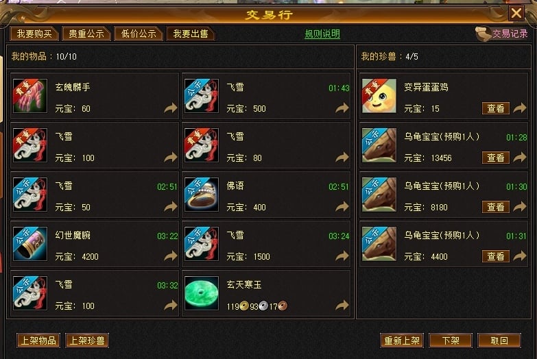 持续更新 带4400元宝 交易行装备也能卖里几千 自己对比吧 不用砍价
