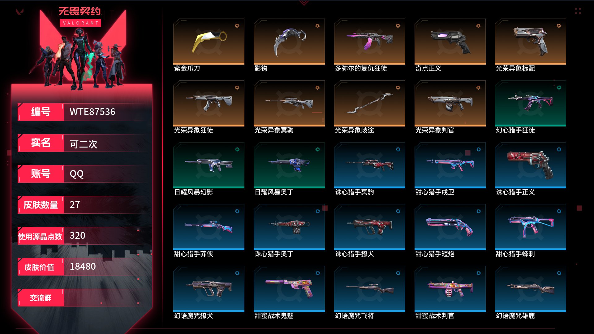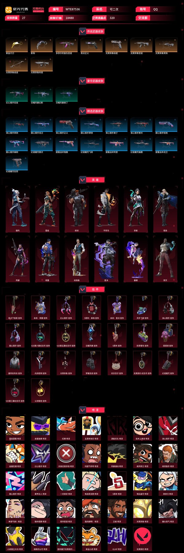 【WTE87536】 | 终极武器数量:0 | 皮肤资产价值:18480 | 卓越武器数量:0 | 传奇武器数量:9 | 奇点正义 | 光荣异象冥驹 | 影钩、光荣异象歧途、紫金爪刀 | 光荣异象判官 | 多弥尔的复仇狂徒、光荣异象狂徒【买号找回永久包赔】