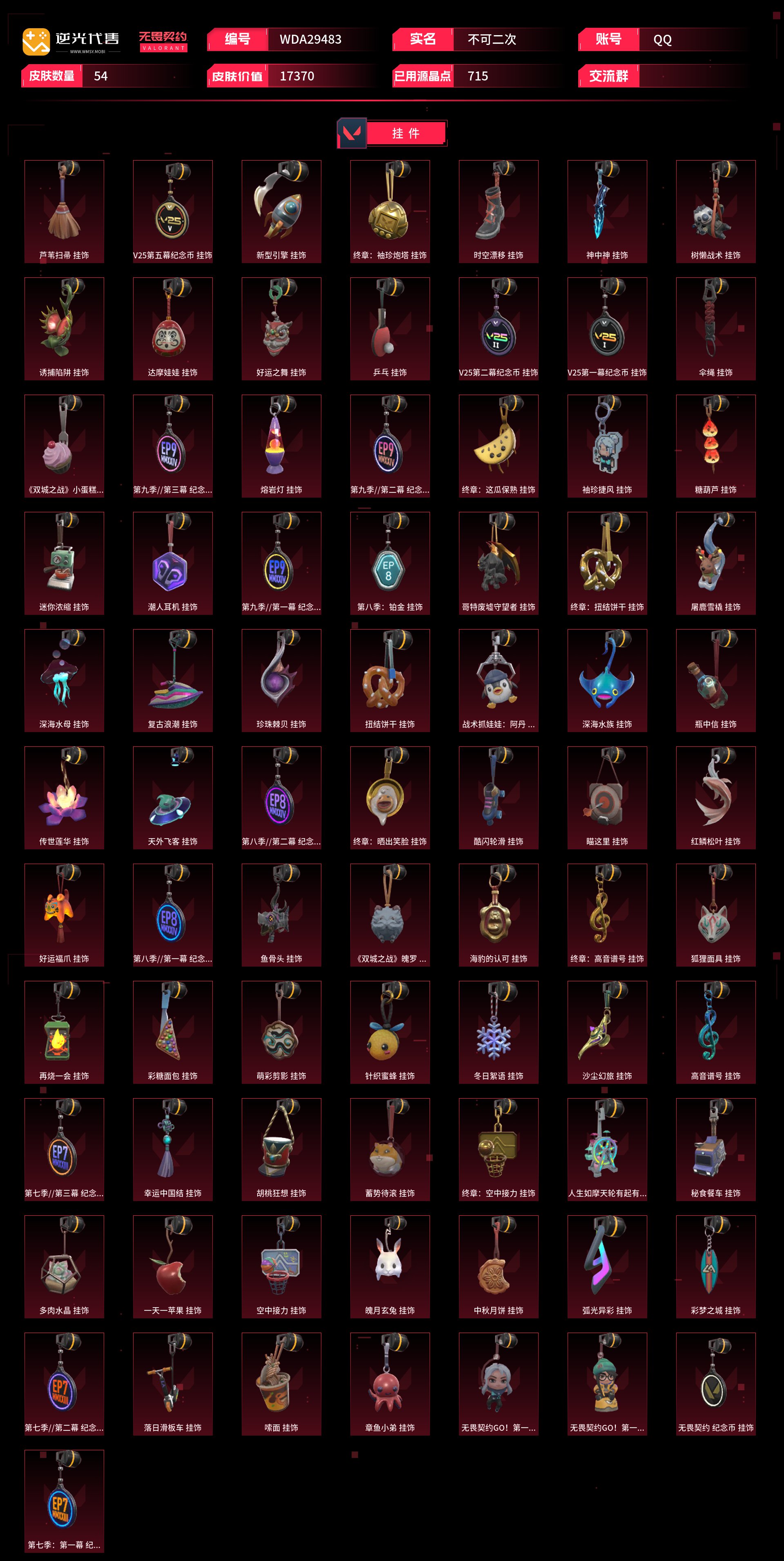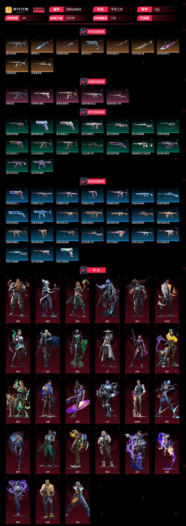 【WDA29483】 | 终极武器数量:0 | 皮肤资产价值:17370 | 卓越武器数量:5 | 传奇武器数量:9 | 塑水宗正义 | 归零者冥驹 | 珍珠棘贝短剑、机动狂飙战刀、神罚军刀、沙尘幻旅匕首、弧光异彩军刀 | 盖亚的复仇戍卫 | 紫阙金琅骇灵 | 天界神兵鬼魅 | 塑水宗狂徒、归零者狂徒、掠影狂徒 | 盖亚的复仇飞将【买号找回永久包赔】