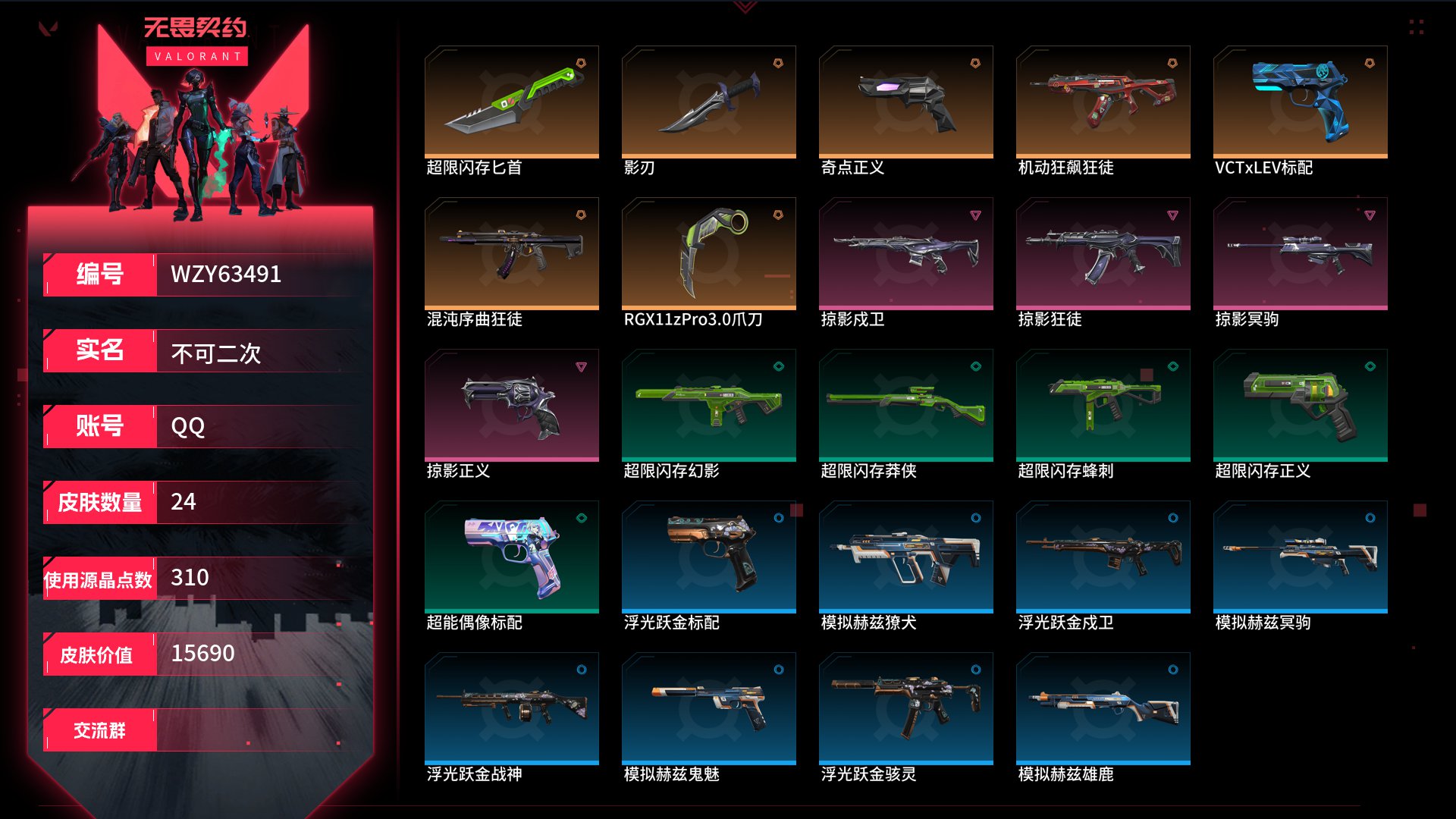 无畏契约国服QQ区,有2次,未定级,掠夺套显卡爪极品号