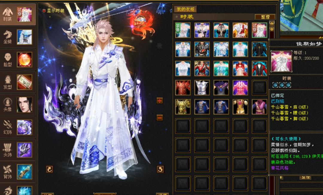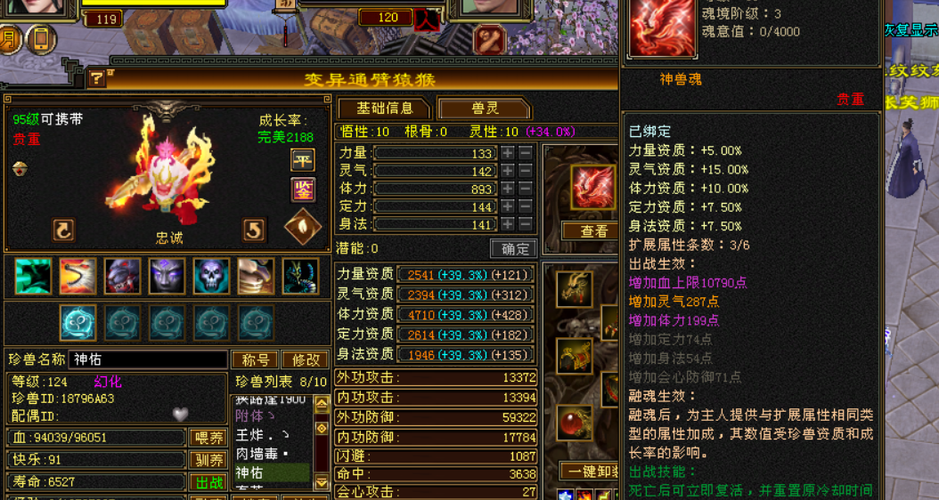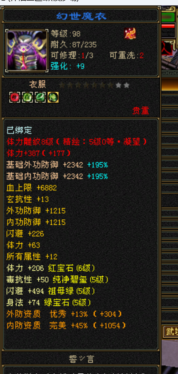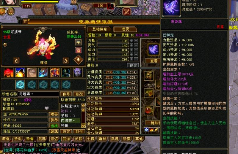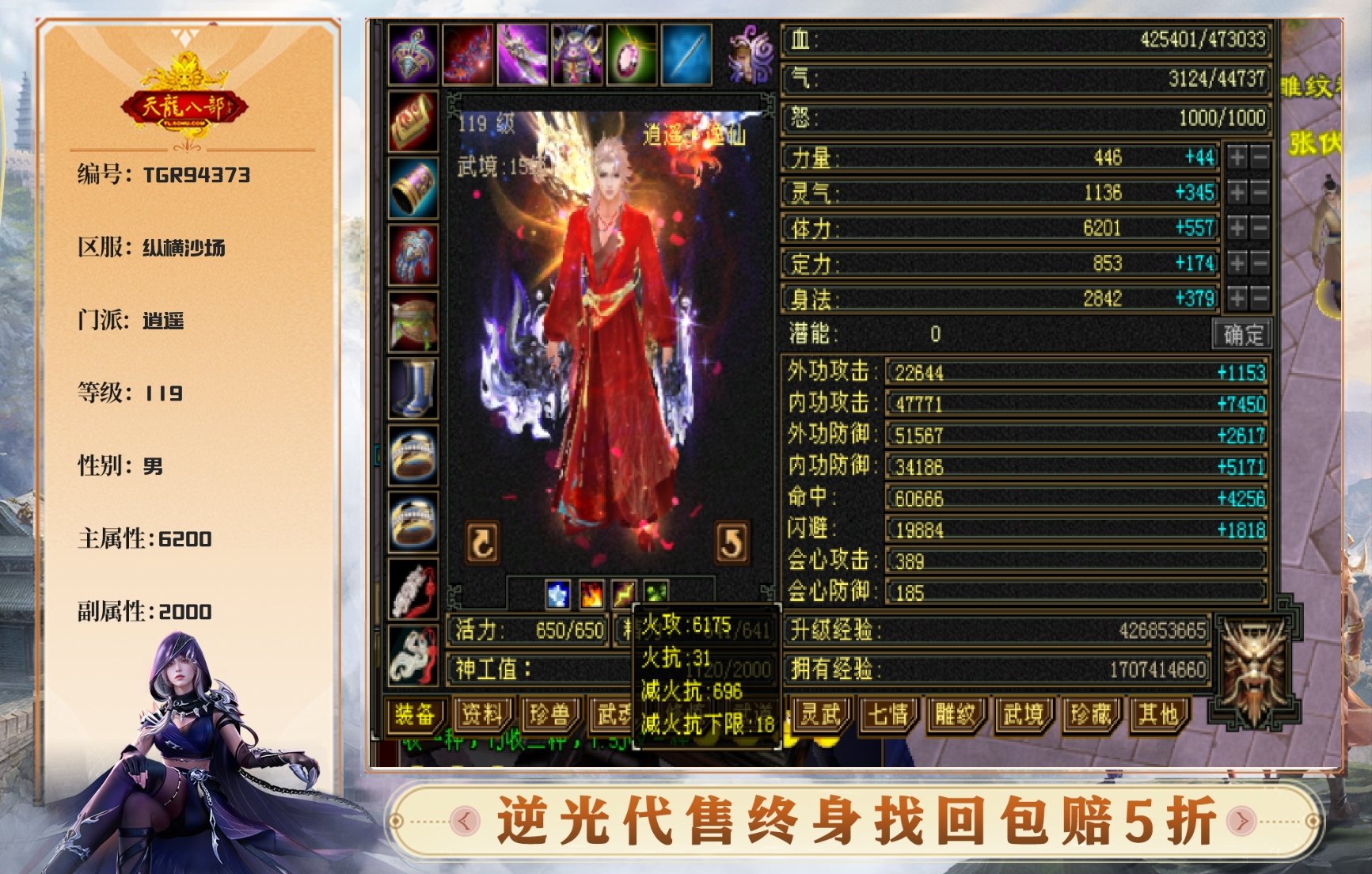 百万推荐 极限5级逍遥带6体 6属性 双盟会10+9级 裸面板三修 超高爆发 完美外观 服装宝石基本大部分全是3级配饰 外观幻视多 永久坐骑 巨猿 宝宝价值高 4700+附体体力 4400+出站体力 完美!!怀旧首选!!万元天花板 不符来战!
