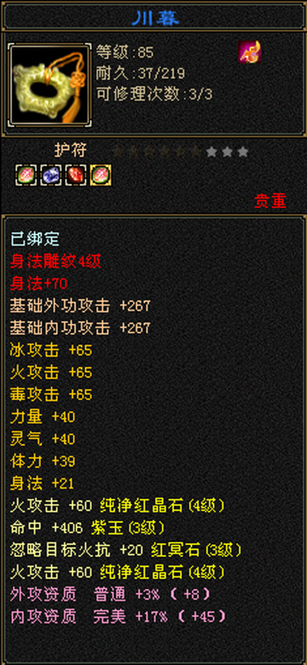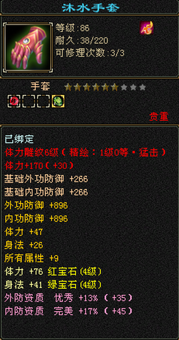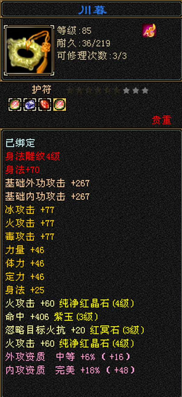 【11.28更新,衣服染了个色懒得截图,】一手号边玩变卖,无恩怨,无帮会,有V不排队,满4属带几颗5,总属4000+,3000多绑元20多颗3级宝石,副本困难通刷,点数基本满的自己看,完美词条金乌,朱雀2阶,送两只体力,满心法,修炼身法马上满,武道4-3,放大稳定,白嫖养老轻松,仓库材料多多,同账号还有个88级恶人谷,带4周年限定周年时装,绑元4000多了