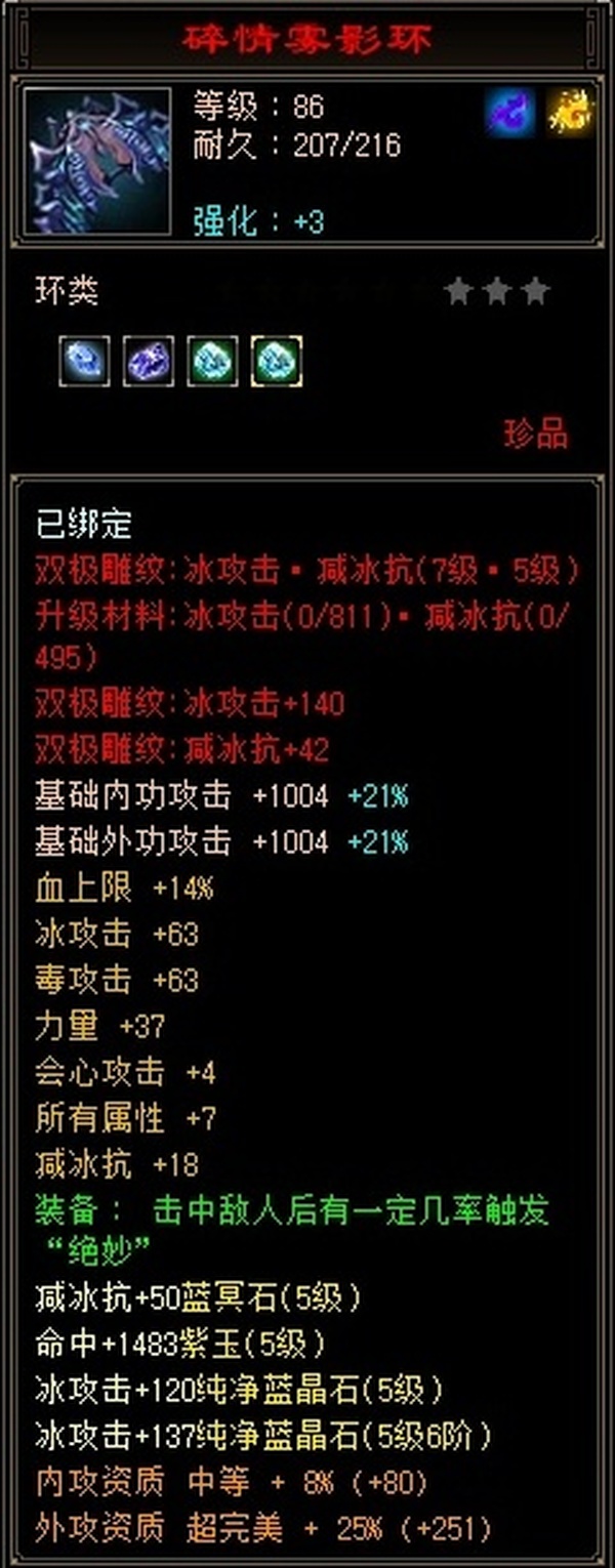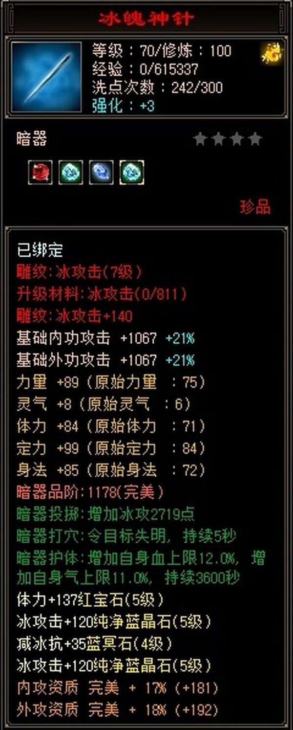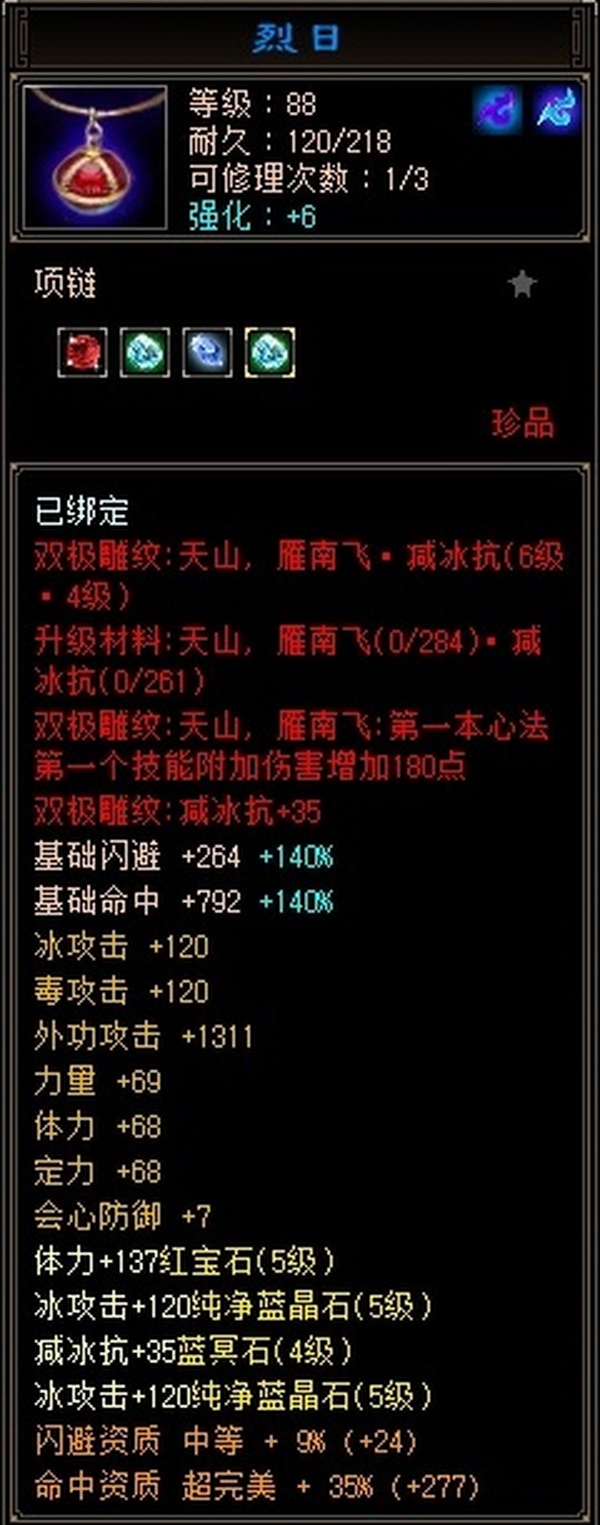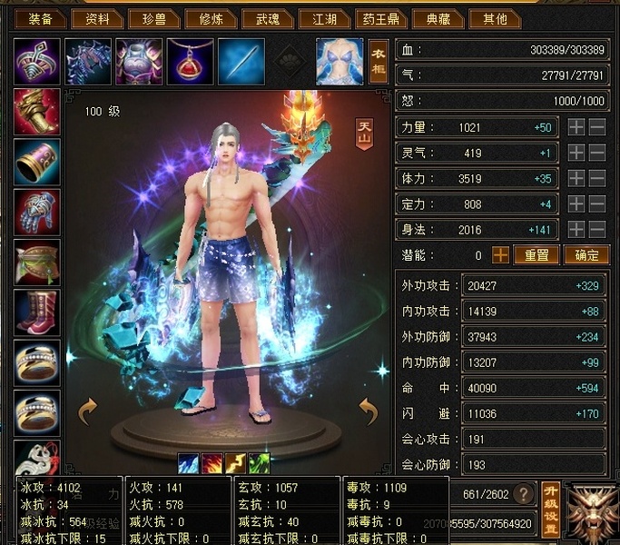 天山 | 等级:100 | 主属性:4102 | 副属性:2307 | 男 | 主冰攻