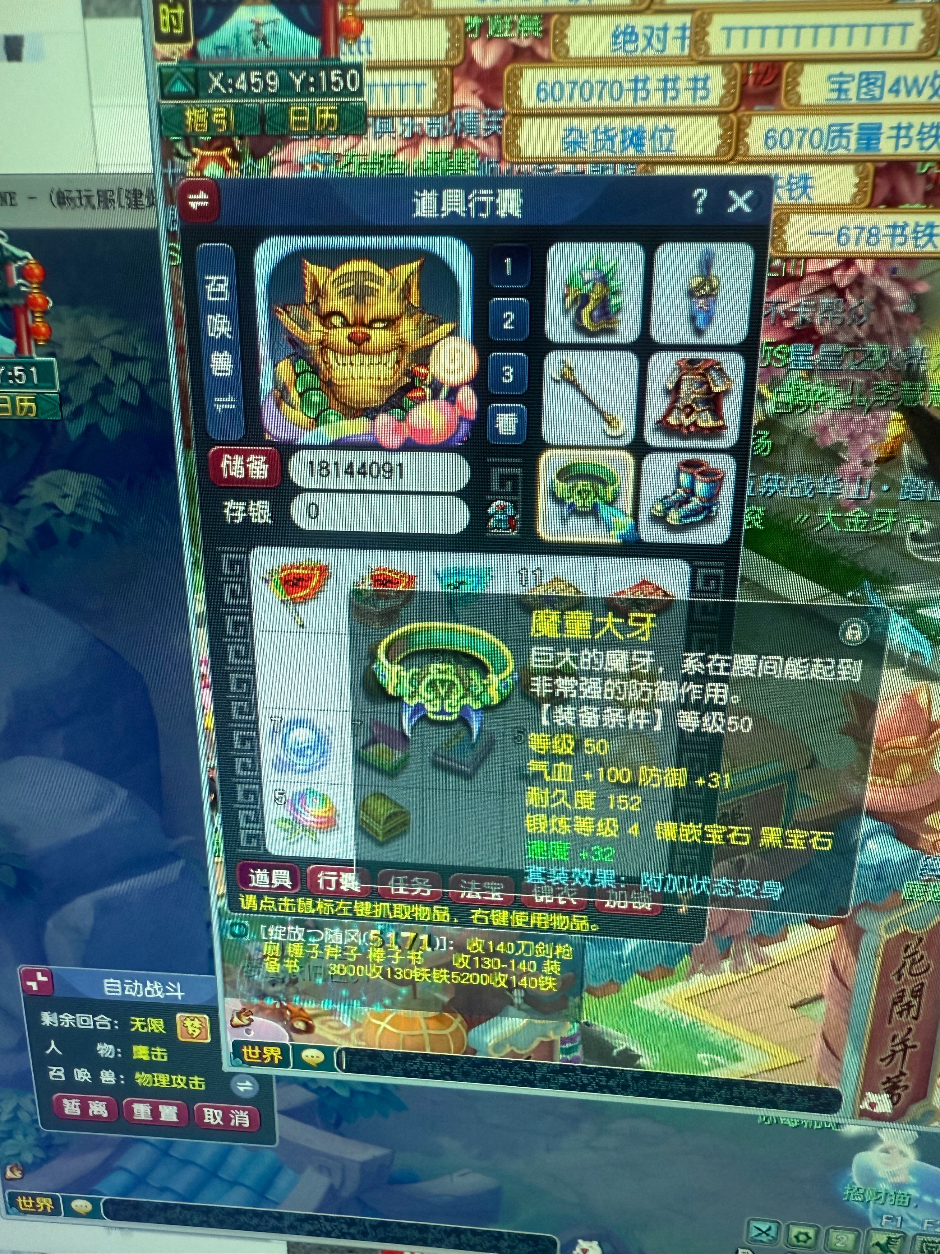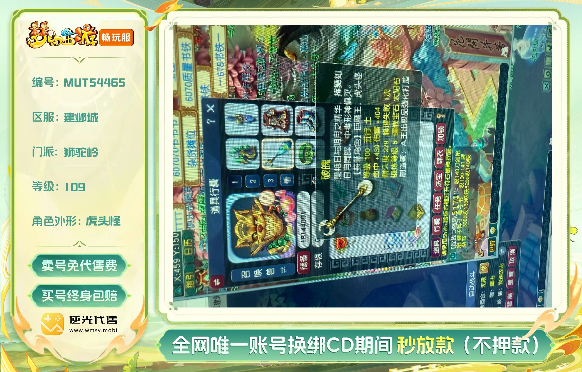 109光膀子满修带两只鲲狮驼岭,带装备,2转泡泡和卡速,不会玩卖了,拆开算超值,泡泡3000,60的变身6段鞋子加两件50变身最低1000以上,还有个卡速老鼠500,光膀子带鲲满修狮驼岭号摆合2000多,快秒吧