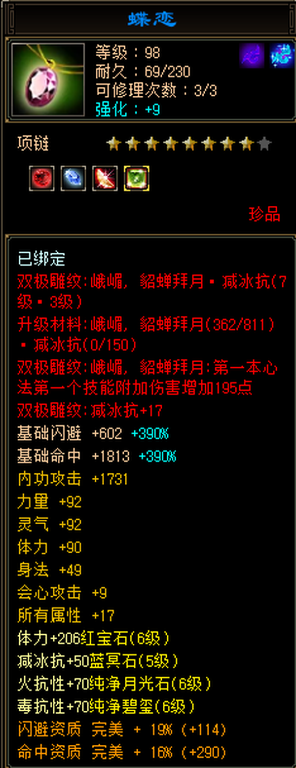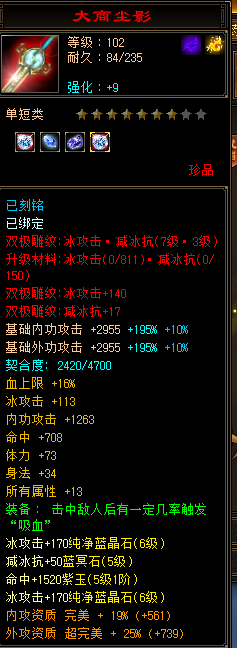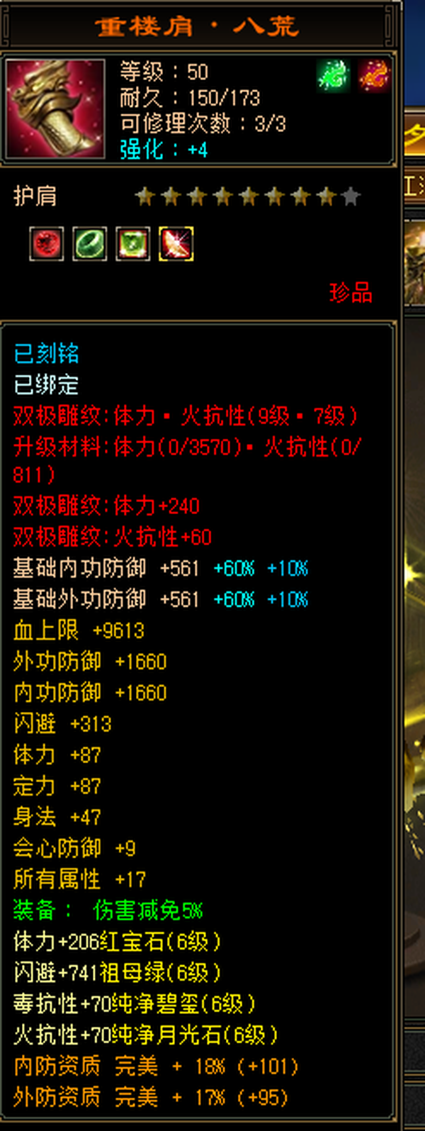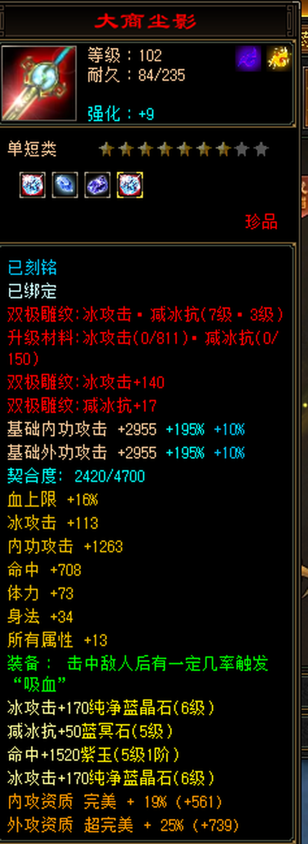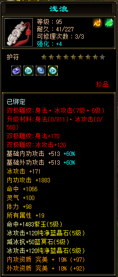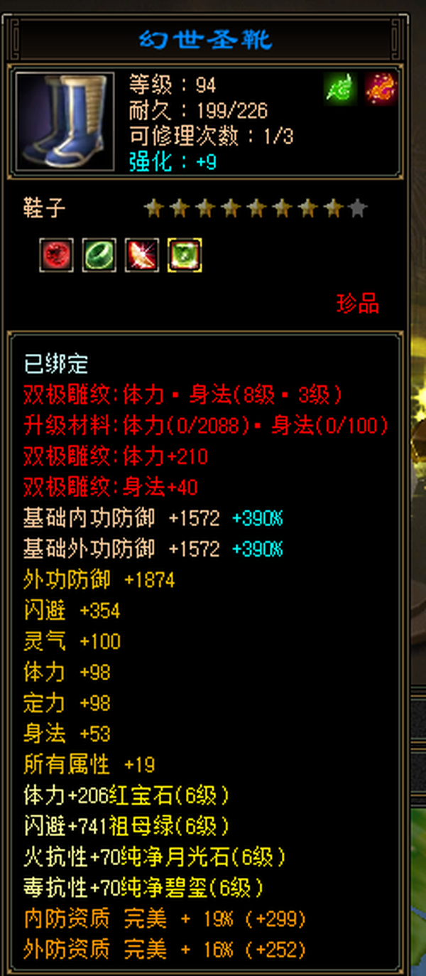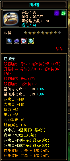 两折多点出六级峨眉直冲18万R消费660万元宝,全服第一花瓶,配饰幻视都是顶级,活动时装坐骑基本满,天雕基本满,2100抗,装备全身大8星,4只双十,包里还有3颗六级冰抗