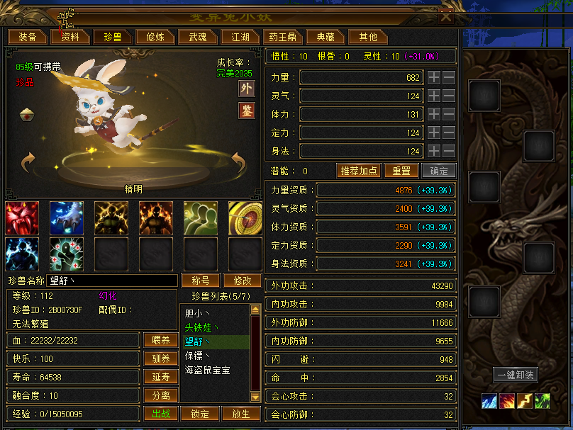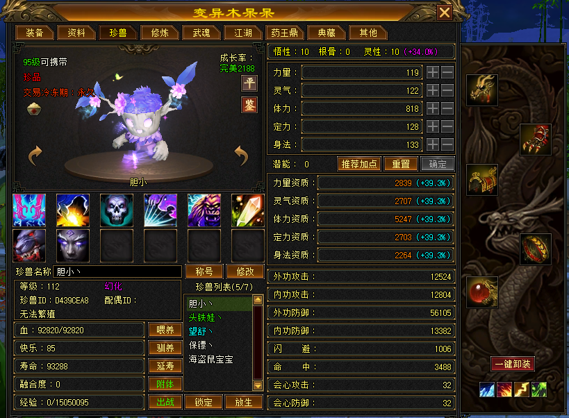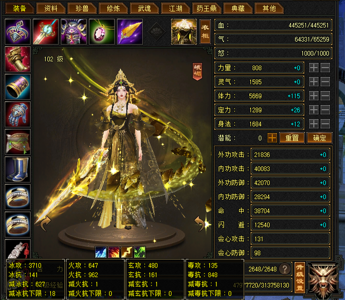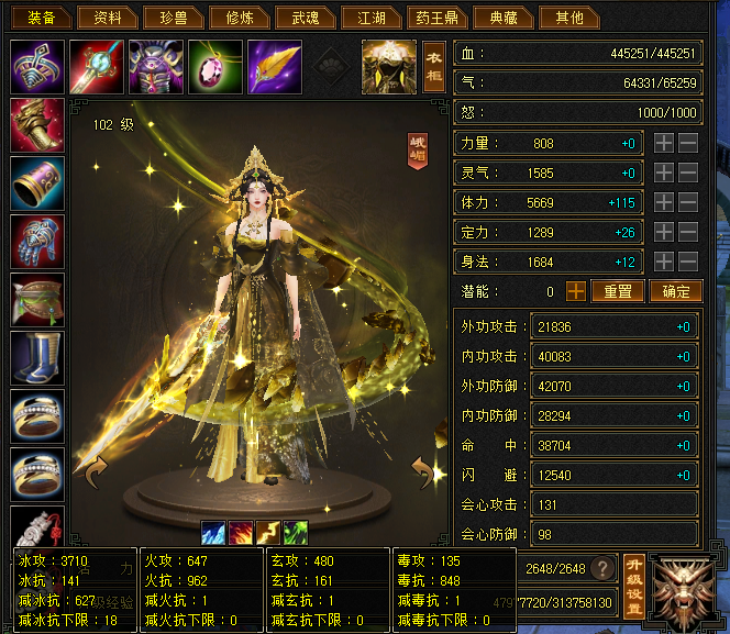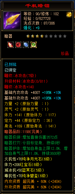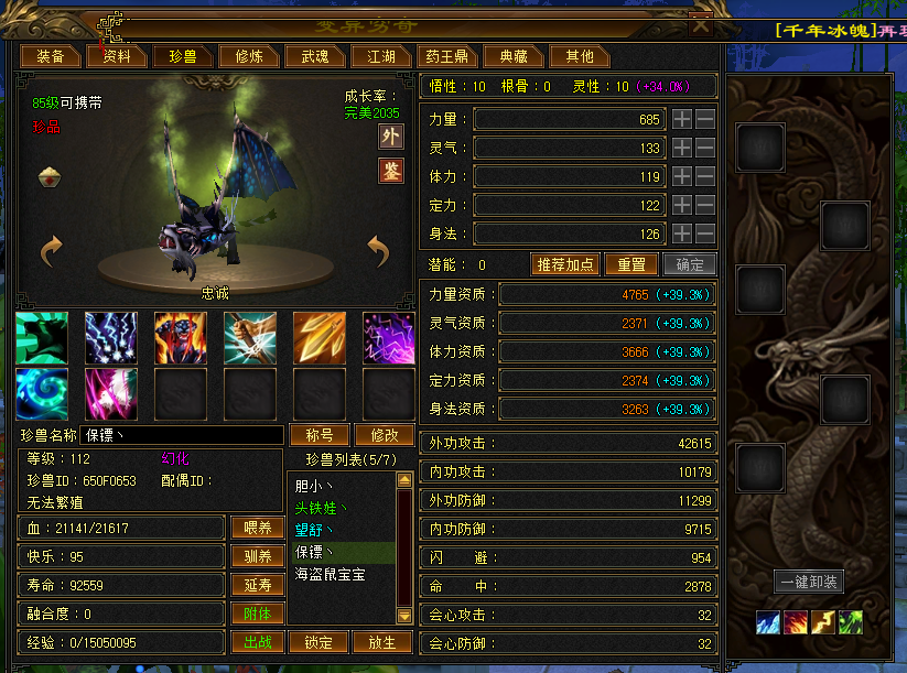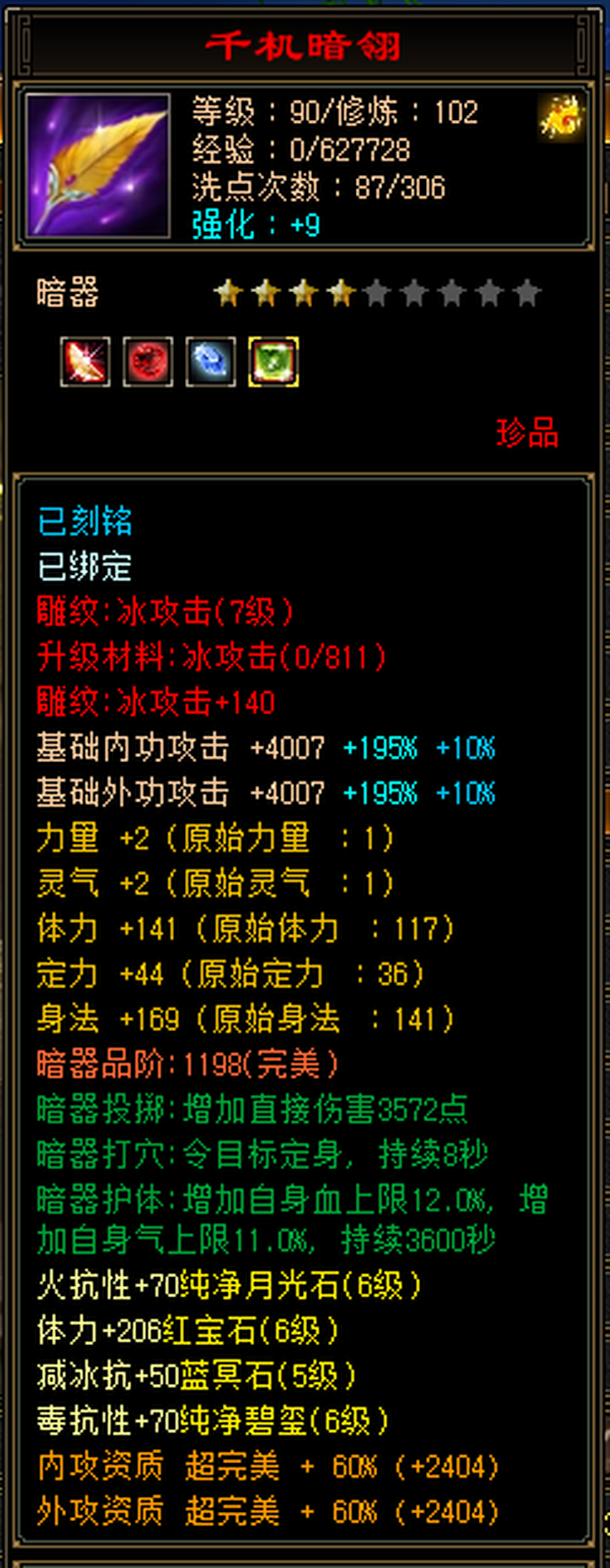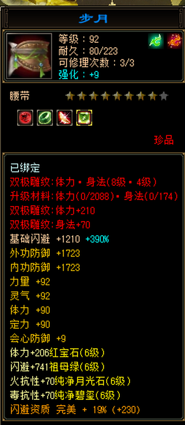 两折多点出六级峨眉直冲18万R消费660万元宝,全服第一花瓶,配饰幻视都是顶级,活动时装坐骑基本满,天雕基本满,2100抗,装备全身大8星,4只双十,包里还有3颗六级冰抗