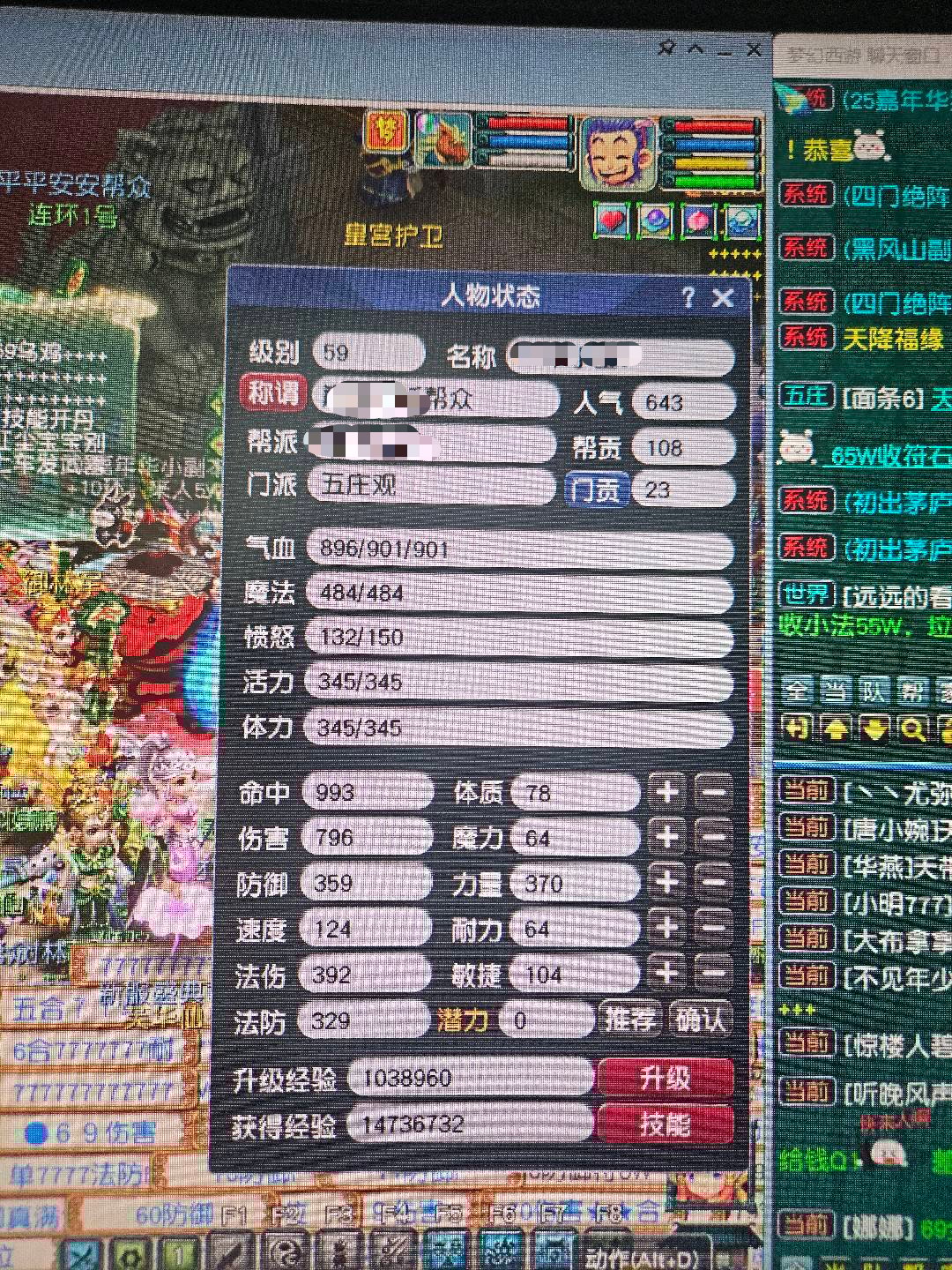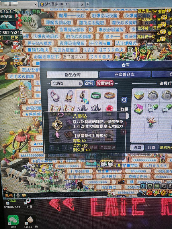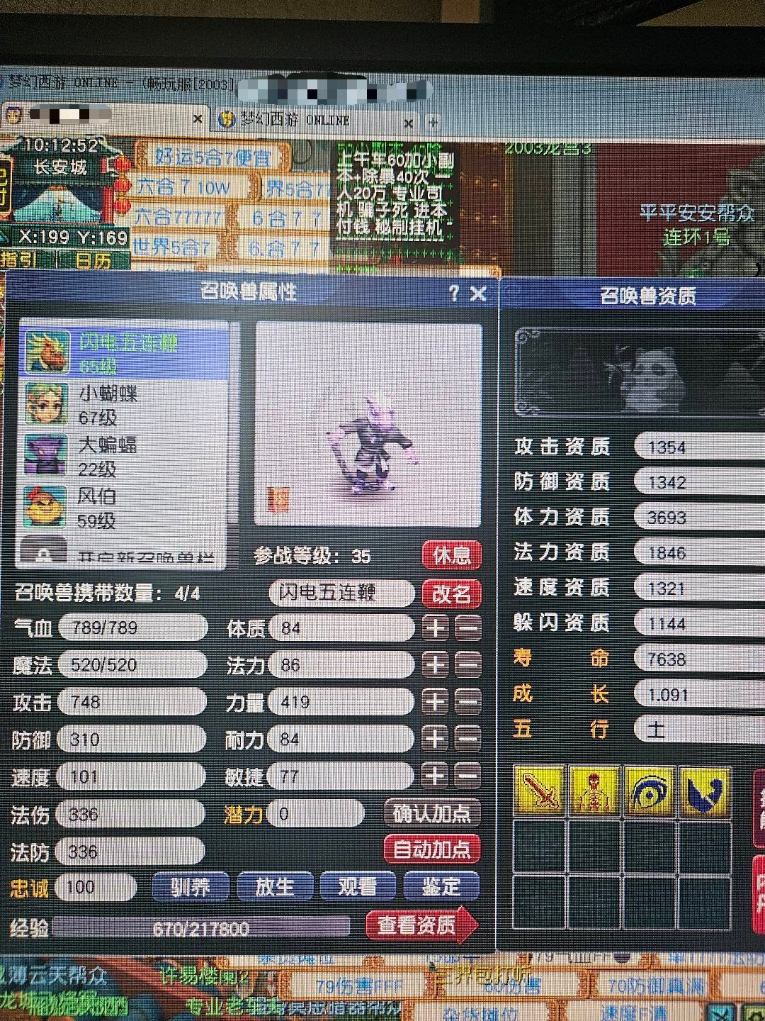 59精品五庄观,满资质变异马面和高魔心高敏变异蝴蝶,经验满,随时直升69,仓库里有60装备4件,还有10个彩果,号上还有330w。没时间了,来个喜欢的人接手把