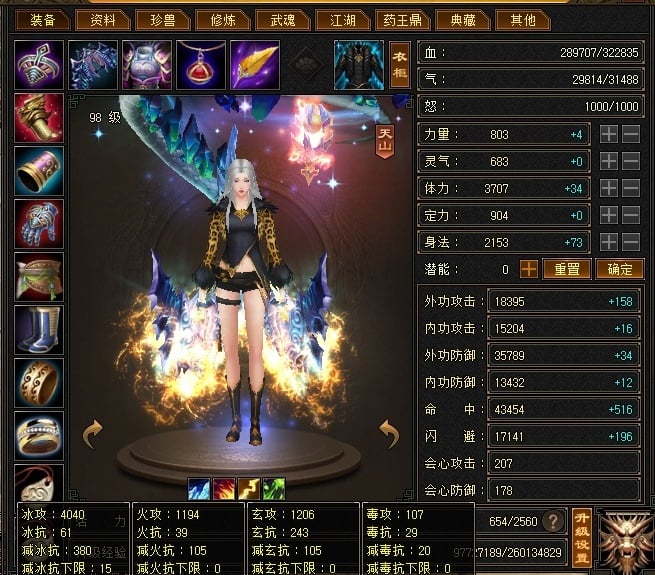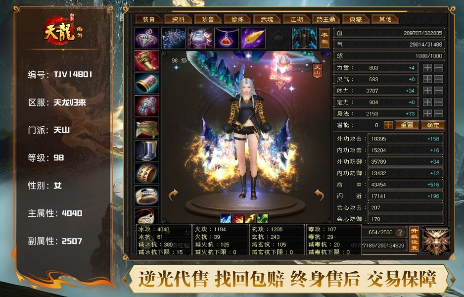 细节三修极限天山总属性6600附体技能6个都是4级重要部位全强9 超完美60毕业