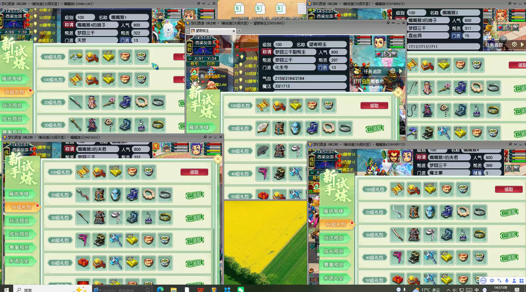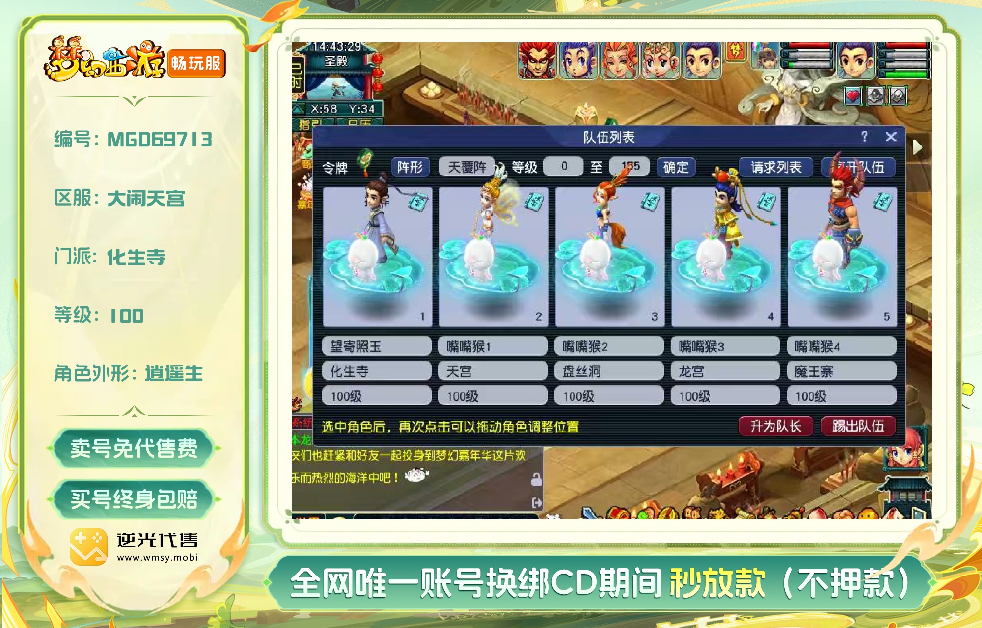如图5个号超级绿通,化生寺,龙宫,魔王,天宫,盘丝,带一组芙蓉,神兜兜都在,买号送5张超级宝图。换绑随时联系