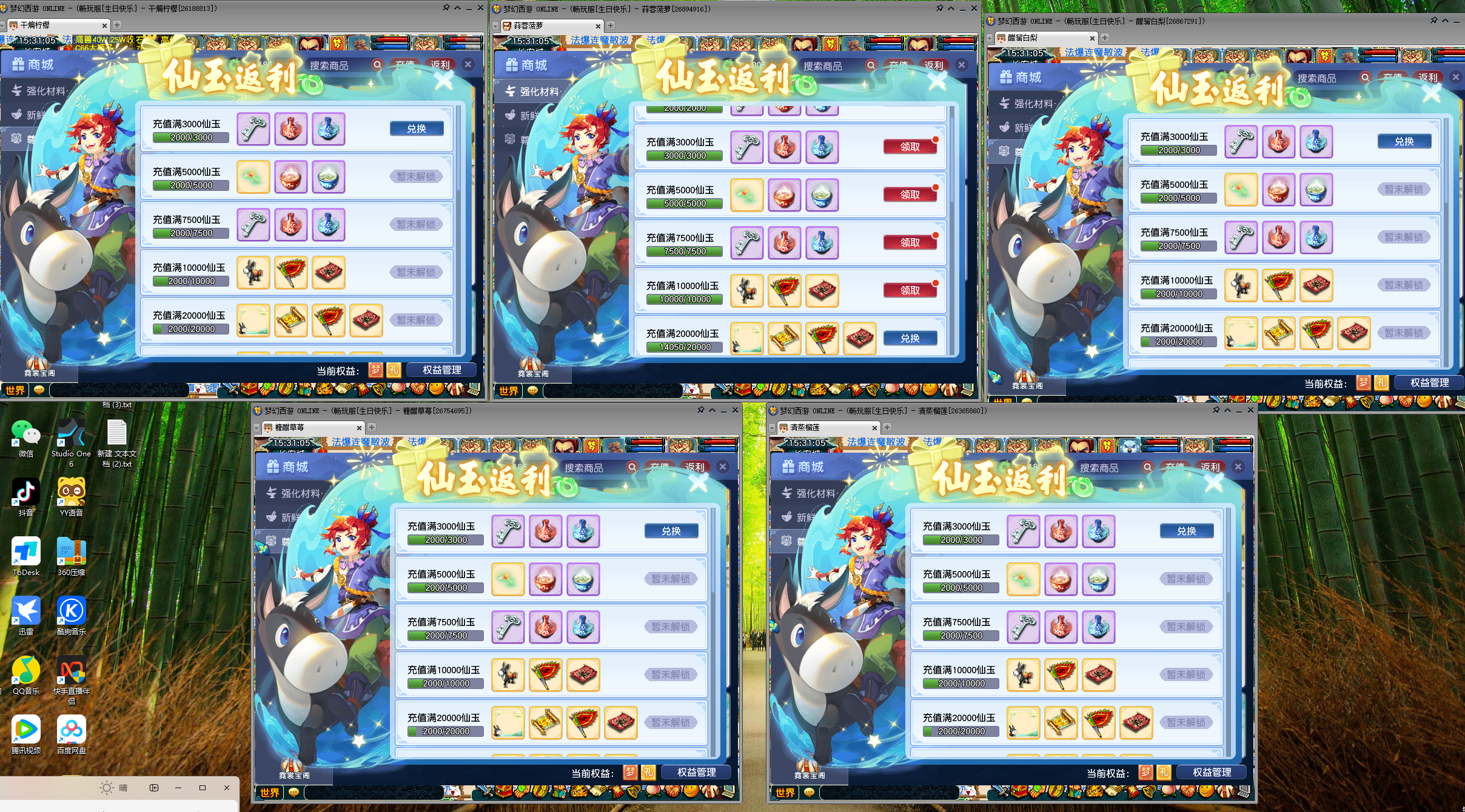整组540+60+6,阵法没开留给你。技能经验活动全满,队长号有驴,累充1600.其他号累充200.送号上几百万加几仓库环书铁二药.号品很好