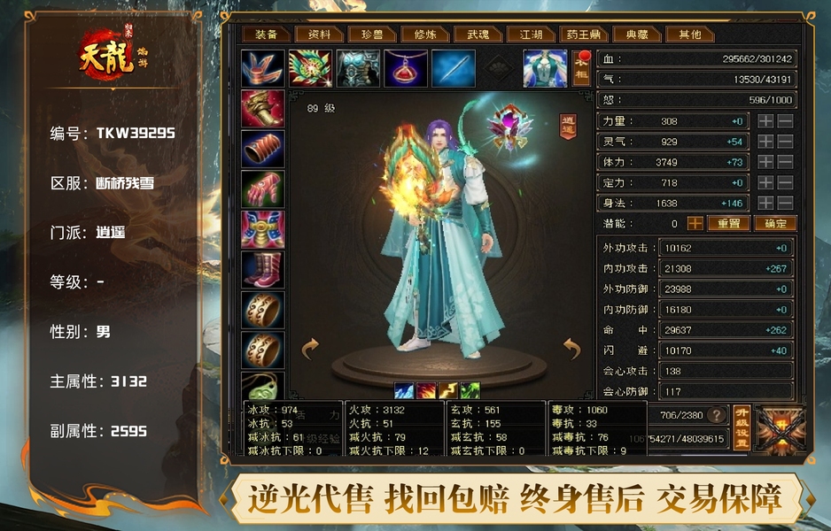 89卡级号 没时间玩了,八星神器 四修逍遥 装备细节拉满 带有3十附体,双十出战,号上还有8k yb + 5k 金,