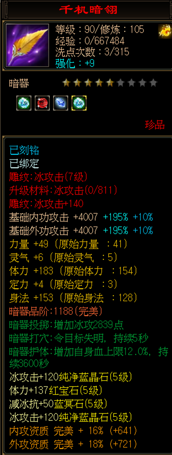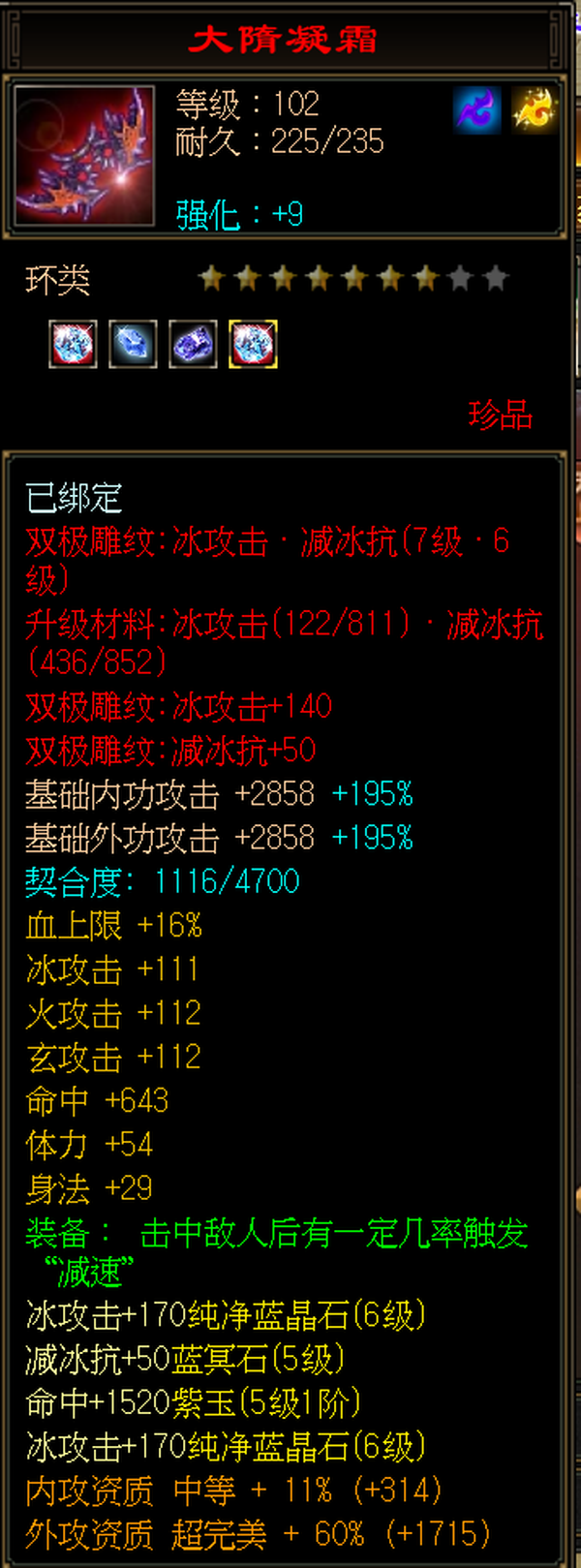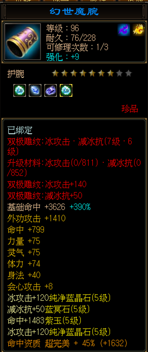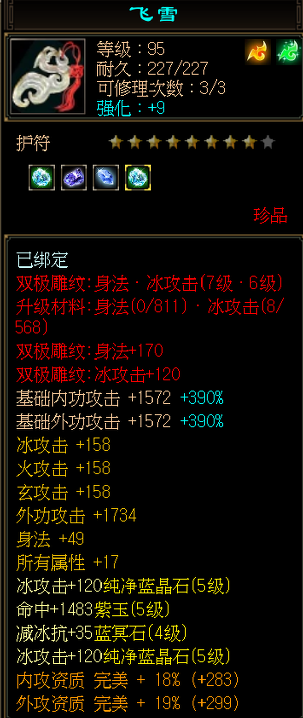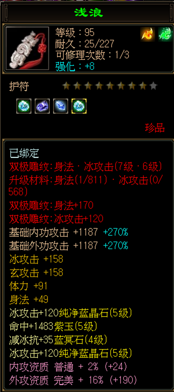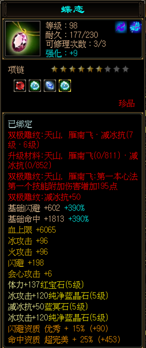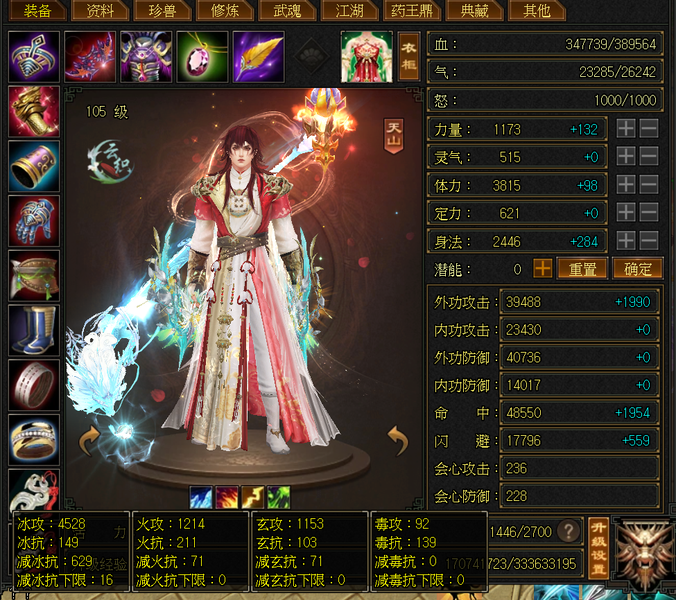 天山 | 等级:105 | 主属性:4528 | 副属性:2459 | 男 | 主冰攻