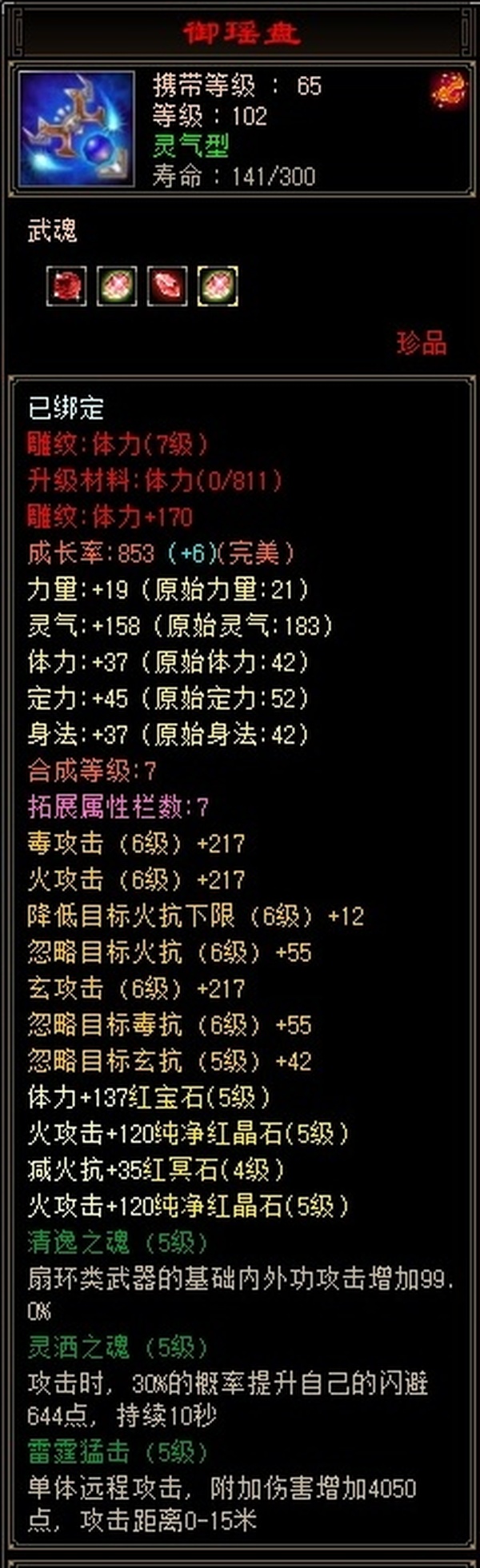 逍遥 | 等级:103 | 主属性:3962 | 副属性:1945 | 男 | 主火攻