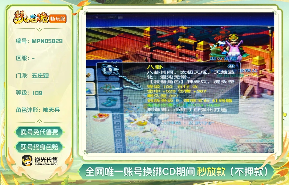 情怀单开玩家,平时没时间玩交给朋友代玩,朋友也身体不舒服,少了点激情,我去外地工作,固出此号