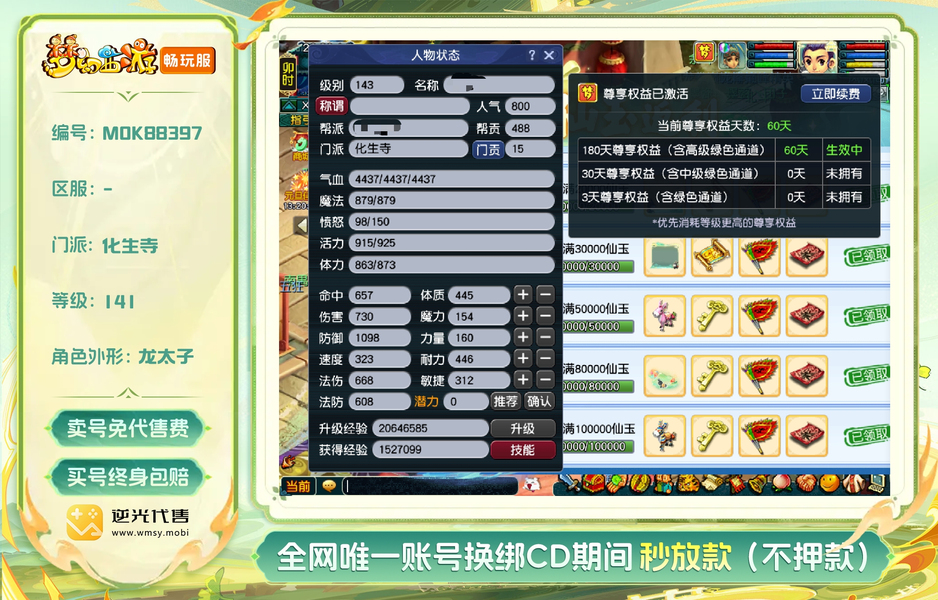 龙拳141-143级1和尚4武装,三修12,带组蓝书法宠。支持一切售后包人脸