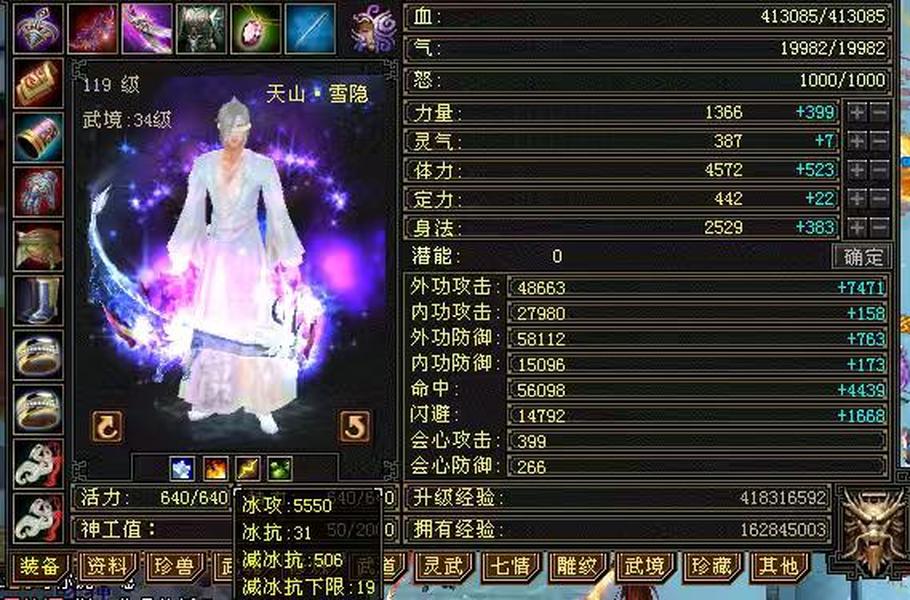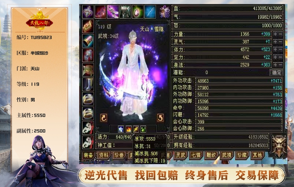 【TUI95823】 | 天山 | 等级:119 | 主属性:5550 | 副属性:2500 | 男 | 主冰攻 | VIP3 | 畅游账号