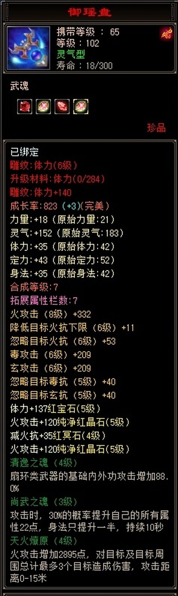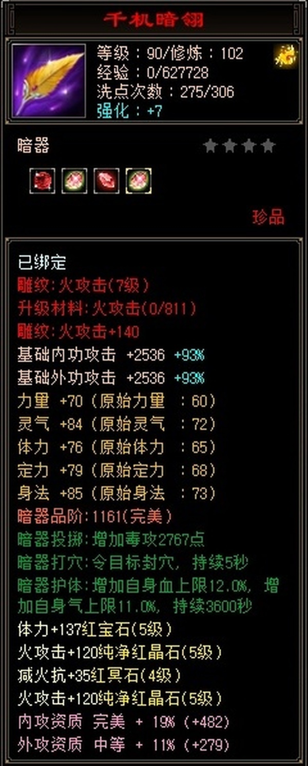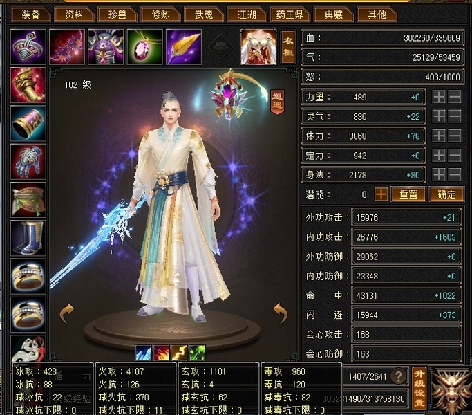 逍遥 | 等级:102 | 主属性:4107 | 副属性:2489 | 男 | 主火攻