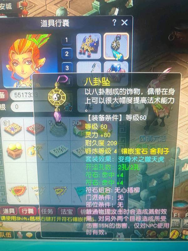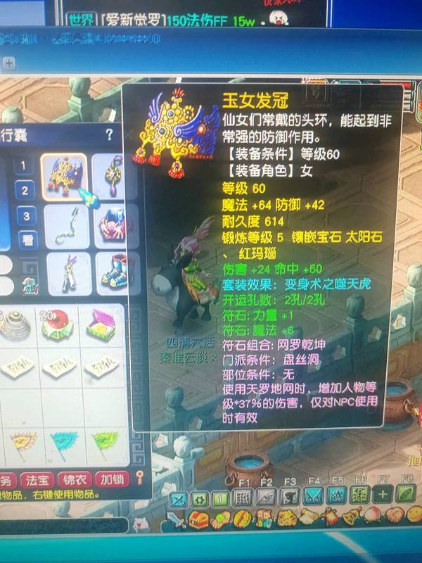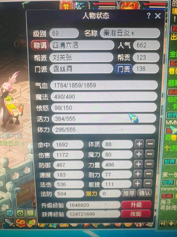 69盘丝,4修满,390武器,22力量满防衣服,噬天虎套装,500W储备金,有法宝有BB