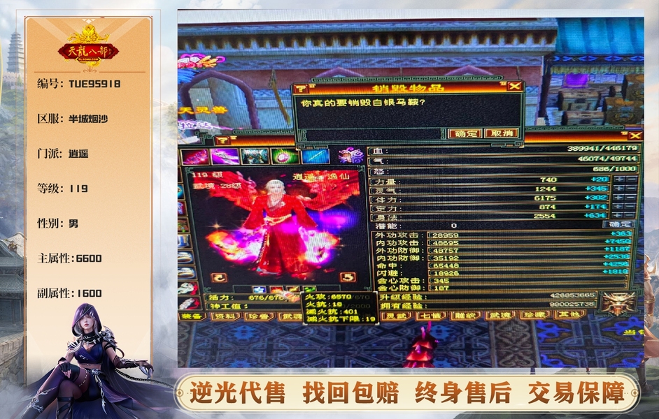挥泪甩卖 十级盟会 双断桥 高命中三修逍遥 附体效果 龙跟翅膀 又帅又能打 百发百中 出租五飘 每天还赚15 不议价