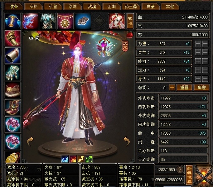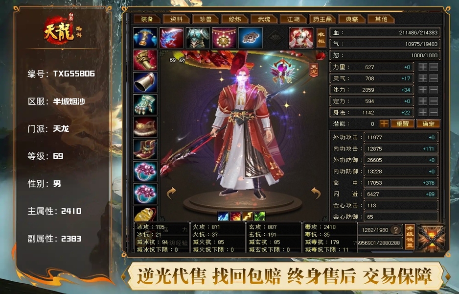 【TXG55806】 | 天龙 | 等级:69 | 主属性:2410 | 副属性:2383 | 男 | 主毒攻