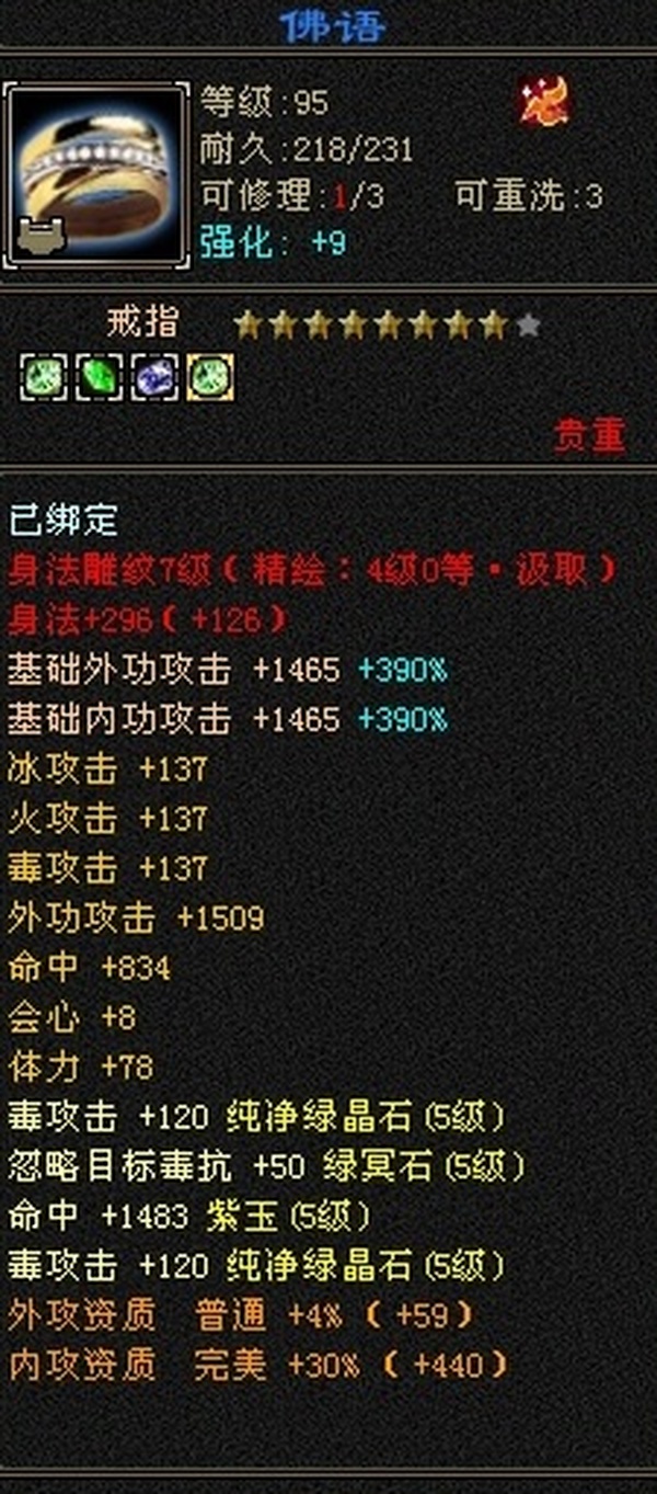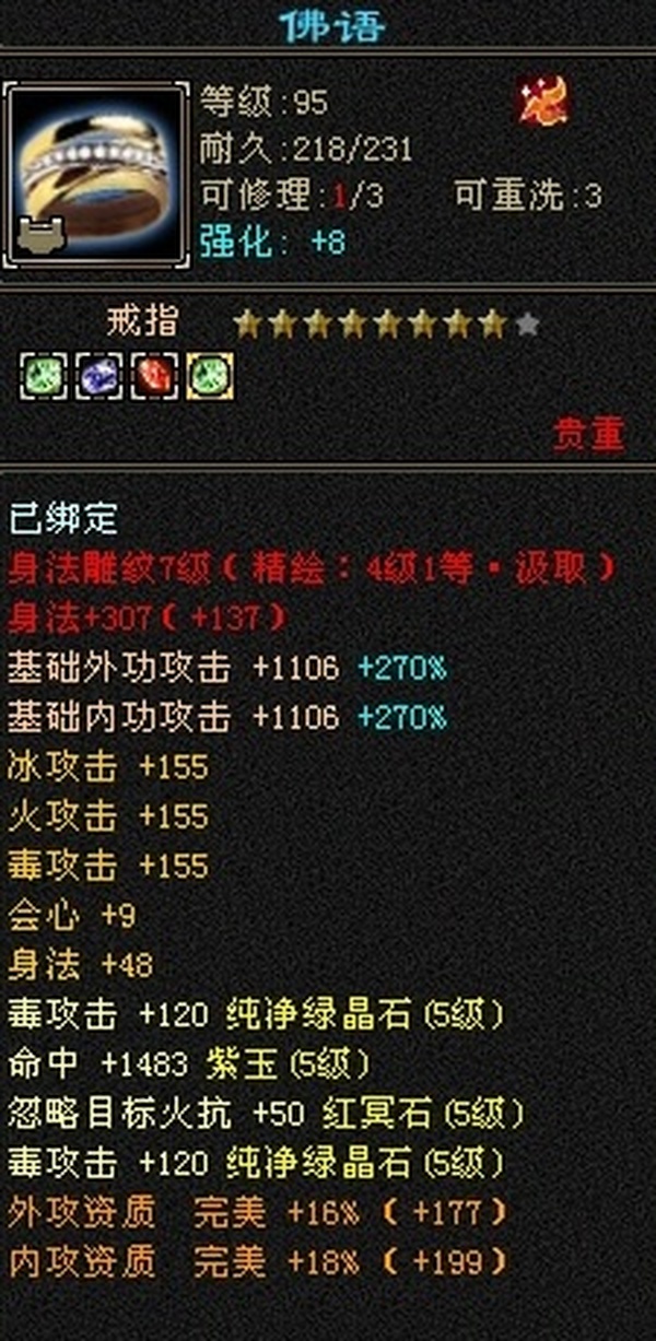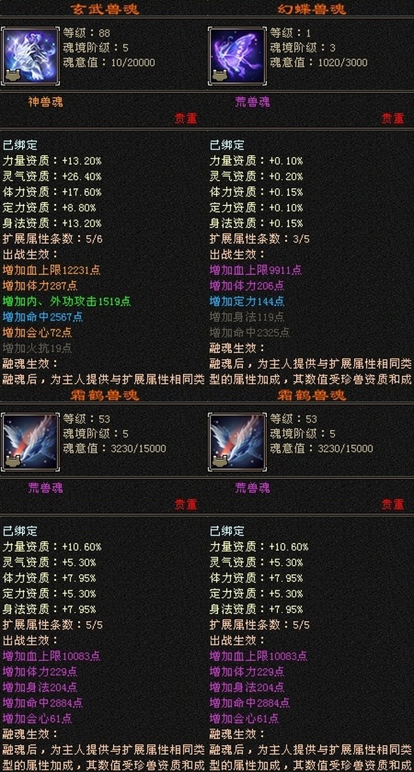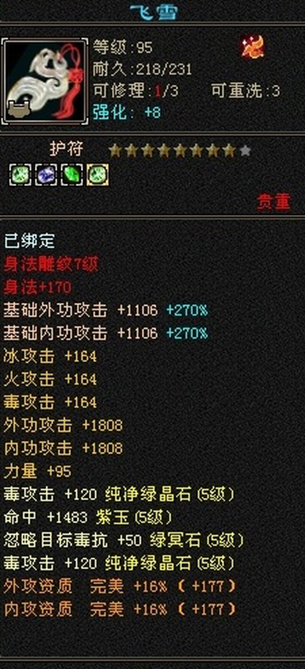 满5部分8雕三修属性,5级神兽魂,细节和幻饰很多,懂的来