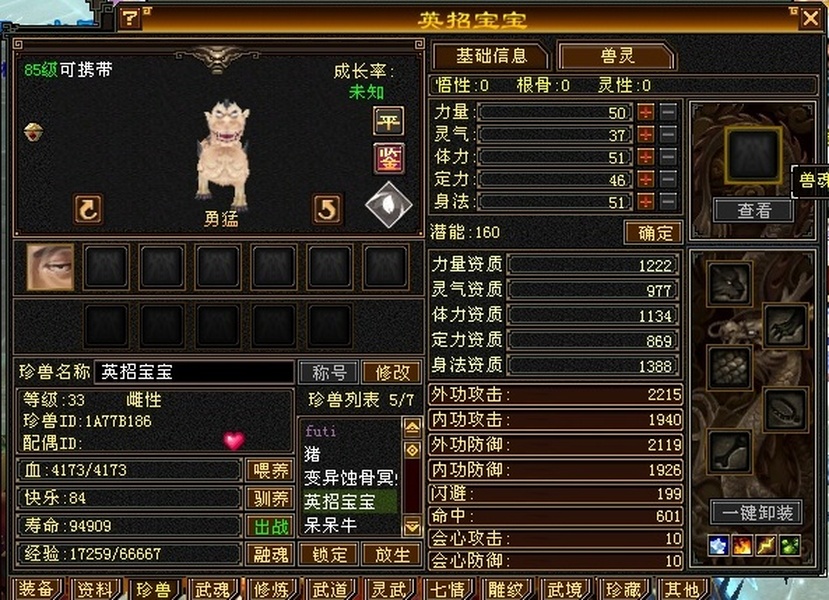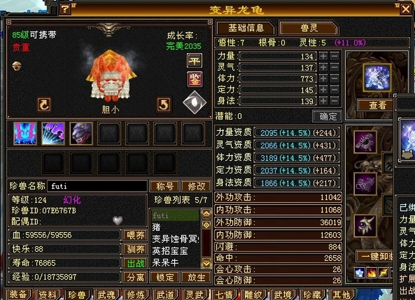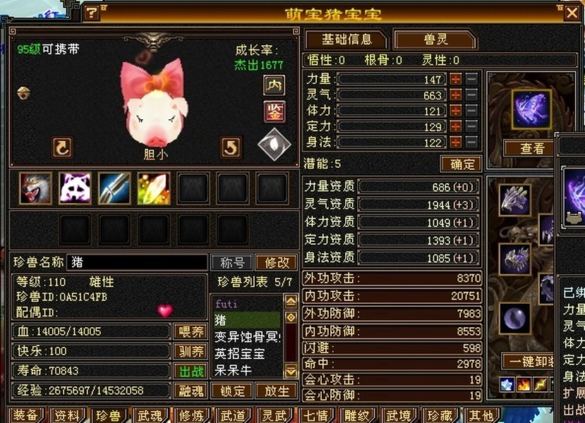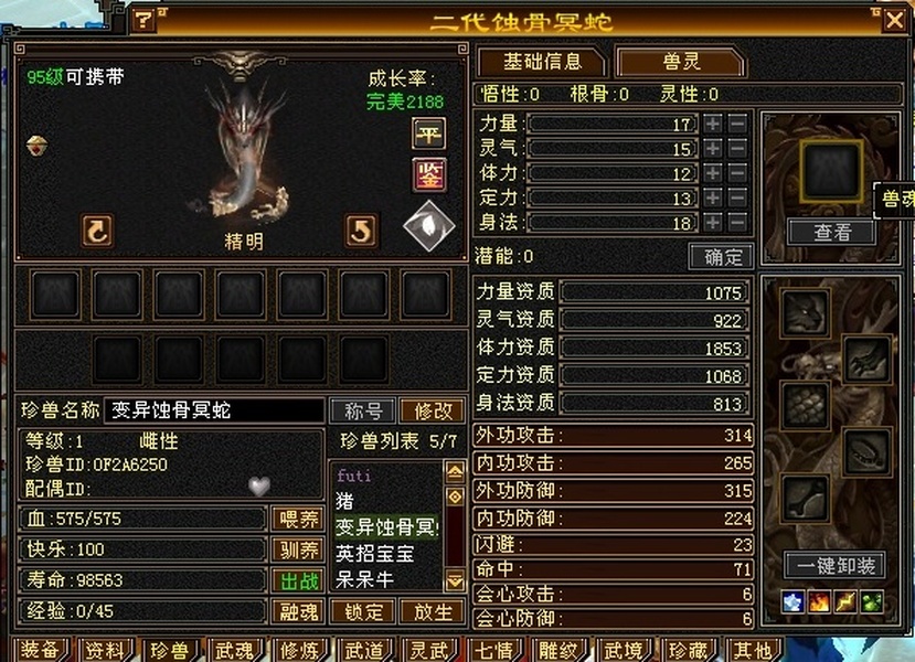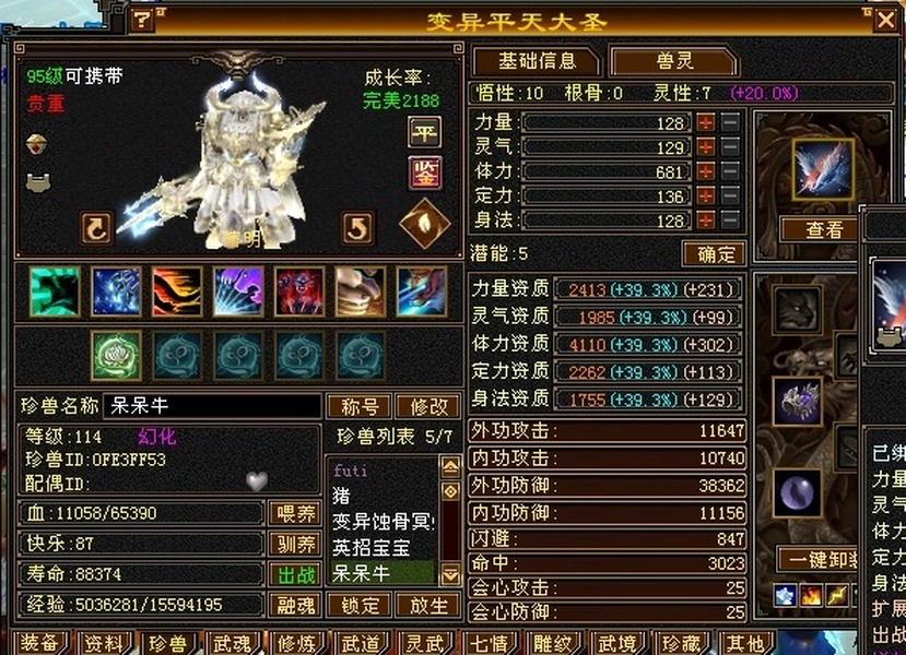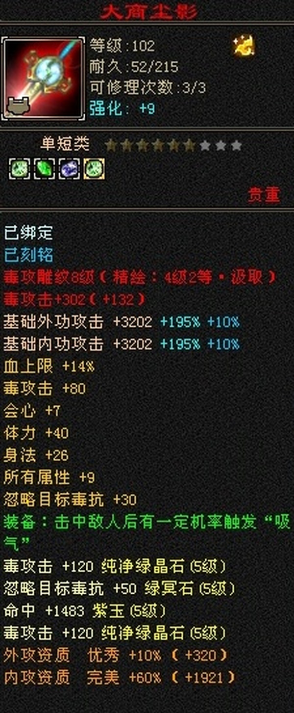满5部分8雕三修属性,5级神兽魂,细节和幻饰很多,懂的来