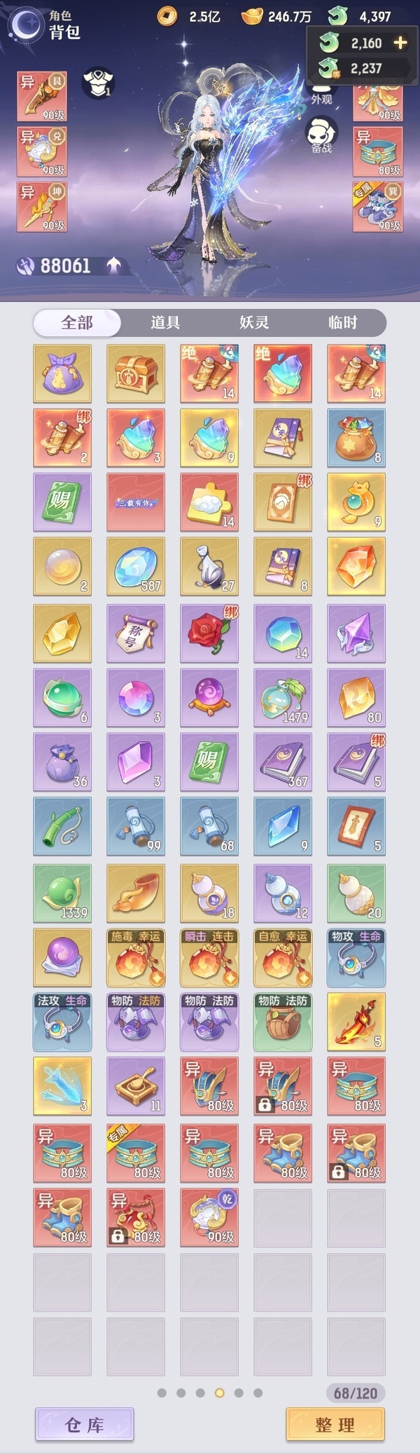 【CAK48764】 | 颜值:24954 | 等级:89 | 青丘 | 神兽数:7 | 法宝颜色统计:9红1蓝 | 总评分:393206 | 角色评分:88061 | 妖灵评分:205108 | 灵师评分:100037 | 倾天三 | 淬金曜蚀,织梦星海,乘波踏浪,山君现,清寒羽冽,灵鸢一梦,墨染尘烟,星河揽月,离火苍龙,九春韶华,玉兔月赏,火树银花,哈?我当武器?,碎梦语情,炙烤大串,一刹雷鸣 | 蝶恋芳菲 | 乌蹄·照夜,太一驴,蟹有钳,钱多多,气球派对,七彩灵鲲,灵华引,星昀渡,比翼同舆,万海真君,罗帷七香车,蕴灵天剑,浪起来,飞起来·壹号,负山海,北域霜枭,跃龙门,神日金乌,鸭与云游,飞天笔,飞龙在天,红莲·出尘,兔球,大荒之主,海月璃梦,贯日神君,玄夜星羚,祥云·虹光,焚天火凤,花将军,招财进喵,初弦瑶桂,乘风入梦,狐心入梦,风驰电掣,踏火焚夜,凤蝶·梦浮生,逍遥羊,柯冲冲 | 【买号找回永久包赔】
