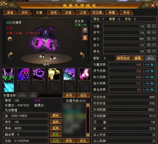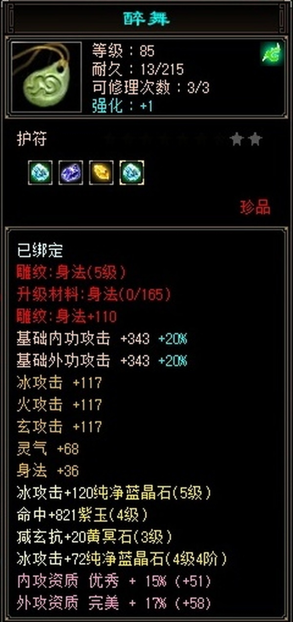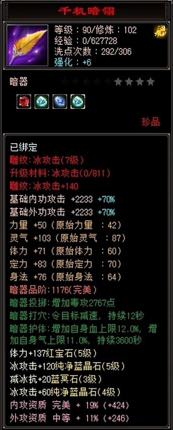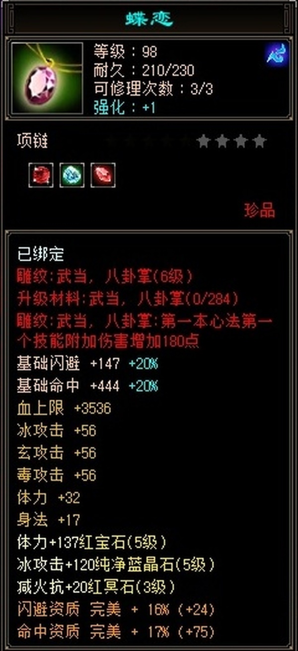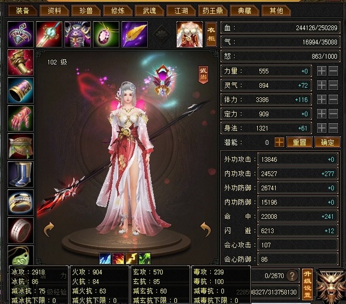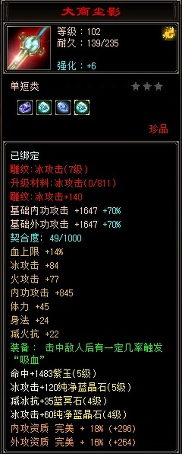 武当 | 等级:102 | 主属性:2918 | 副属性:1713 | 女 | 主冰攻
