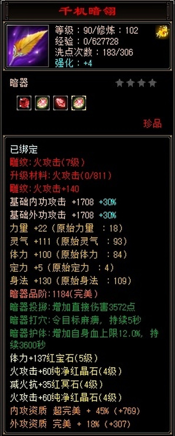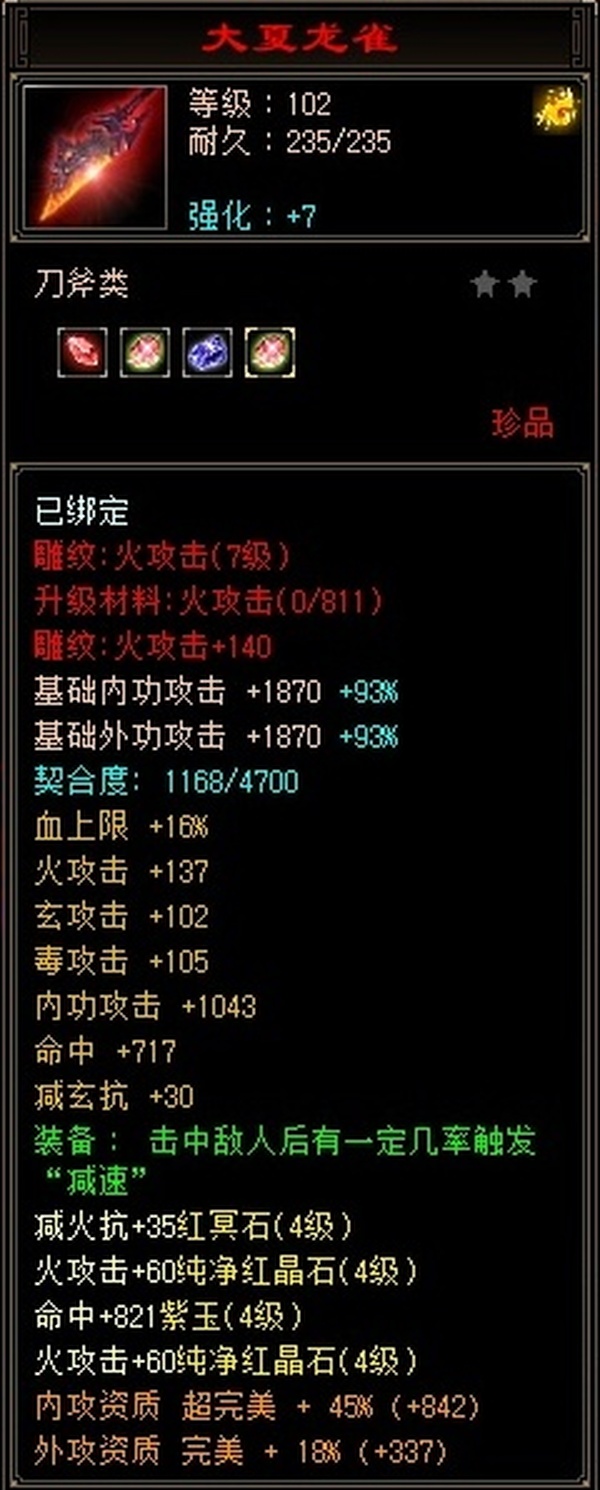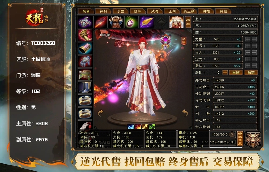 【TCD03268】 | 逍遥 | 等级:102 | 主属性:3308 | 副属性:2676 | 男 | 主火攻