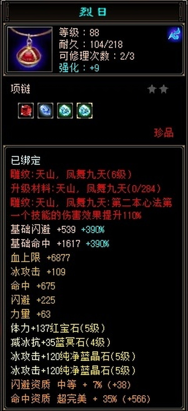 【TTX86629】 | 天山 | 等级:89 | 主属性:4232 | 副属性:2293 | 男 | 主冰攻