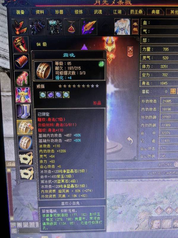 【TKV05141】 | 天山 | 等级:94 | 主属性:4000 | 副属性:1500 | 男 | 主冰攻