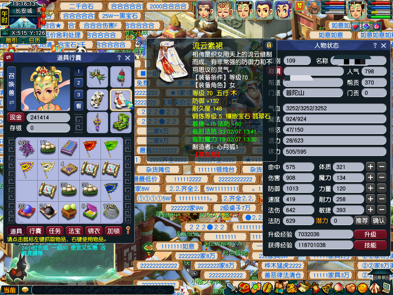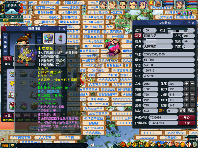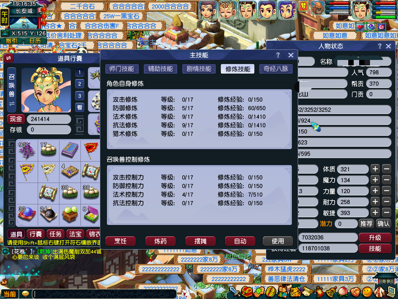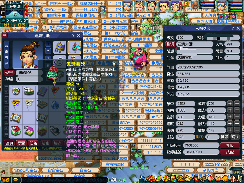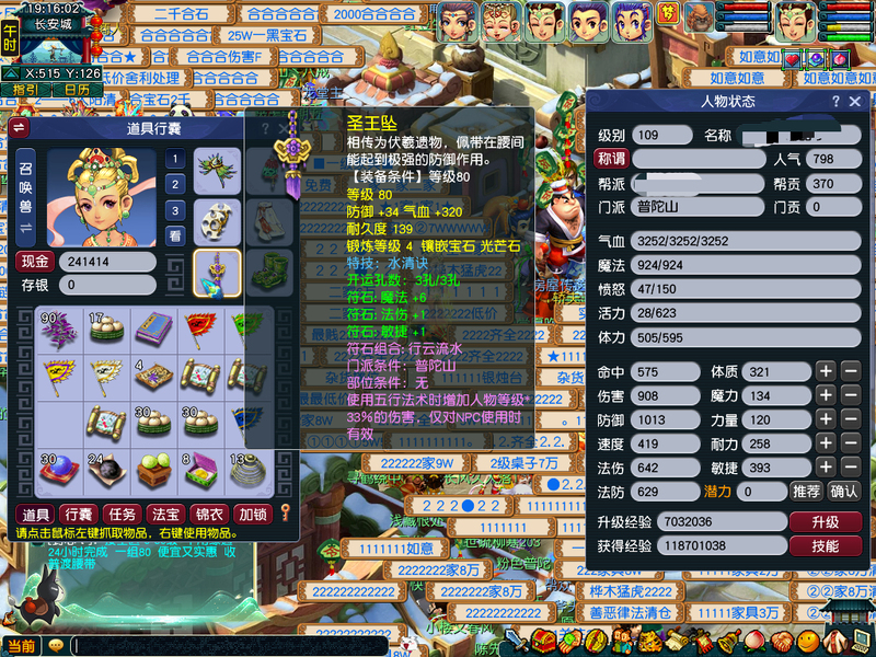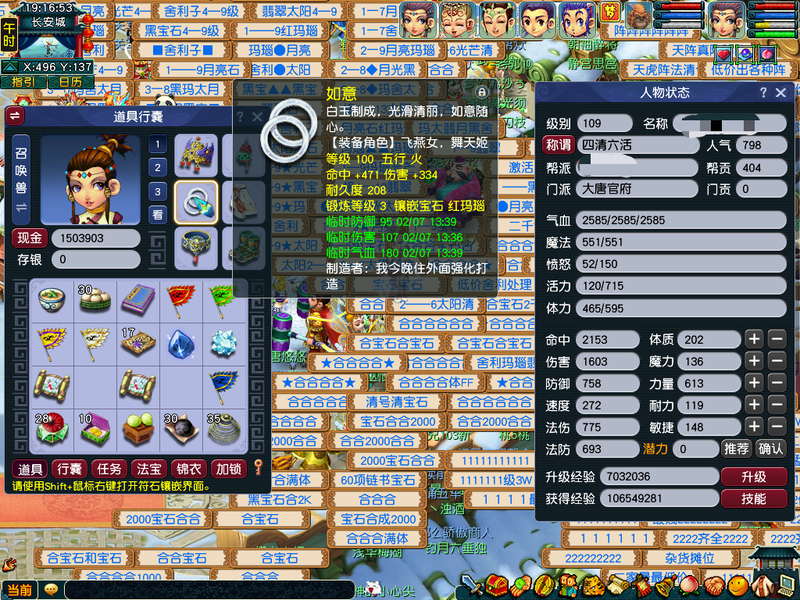 全是540尊享,一手账号。出一组5门。WZ,HS,PT,DT.LG。全号出装备BB。一组巡游高比,一组如意法BB。系统的BB。家里有炼兽笼。通刷一切。DT有2个嗜血幡7层。共有3个葫芦法宝568级