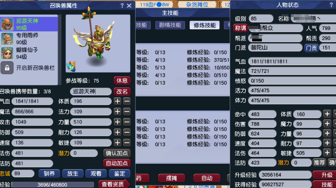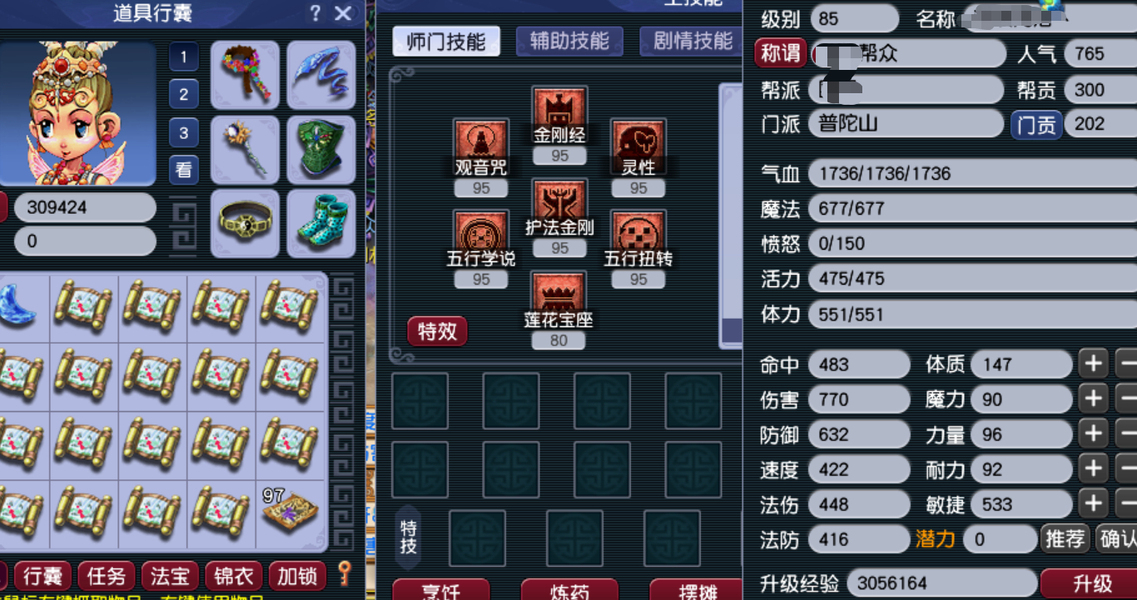 1五观4普陀。天阵,5个角色全80级装备,3级宝石。全2级丹。副本积分仓库东西没动,一天100元轻松,还有3个多月会员,有成长礼包,有物攻,魔攻宝宝,任务全通