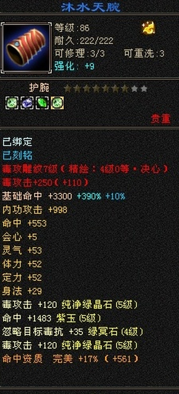 满7满4雕纹,5穿心4绝4凝4猛,4神6荒5荒,换附体33万血4万命中300会心,出价3000的自己去找副本买或者去买119,3000我烂在手里都不买!!!