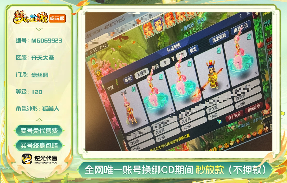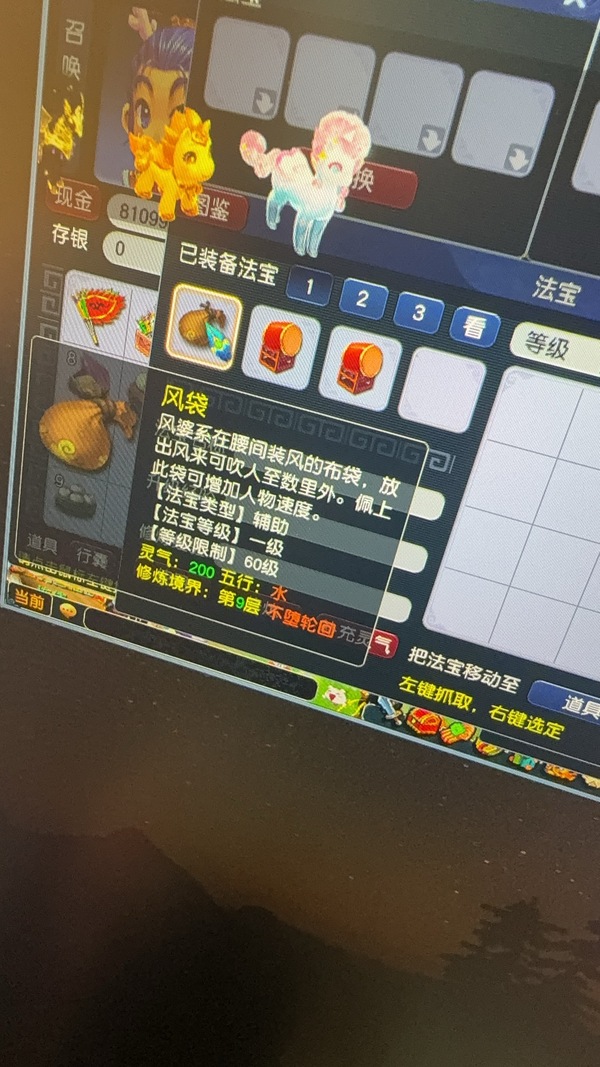 出6个120级的1五庄5盘丝,Wz修炼11.10.10.宝宝攻修6,5个盘丝修炼只有3法修,带巡游宝宝,3套3孔.1套2孔装备,有2个9层风袋,有换绑时间能接受提前放款的来