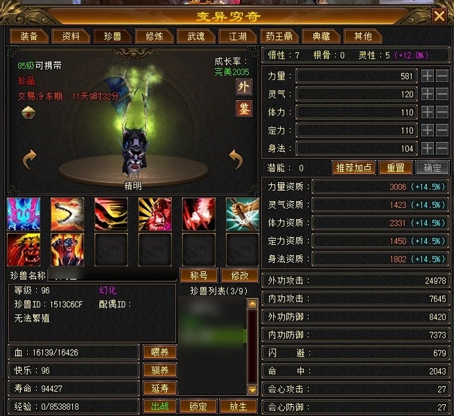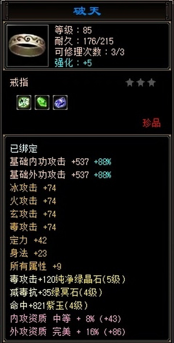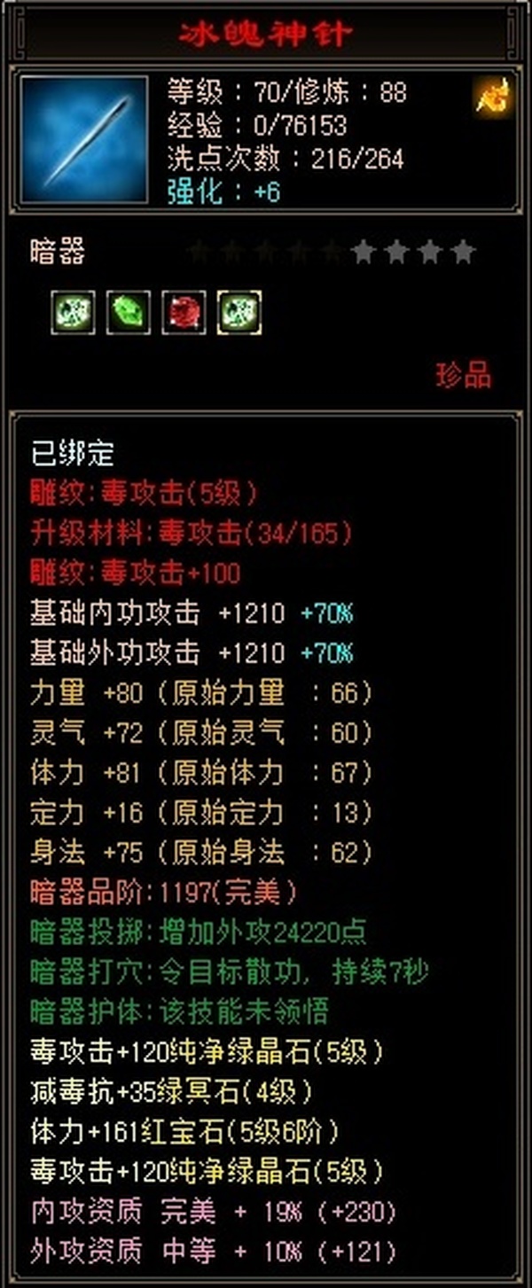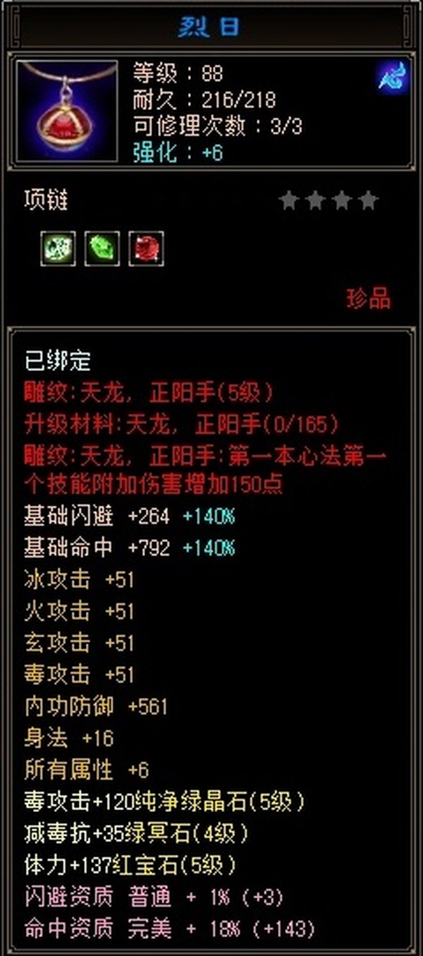 天龙 | 等级:88 | 主属性:2426 | 副属性:1802 | 男 | 主毒攻