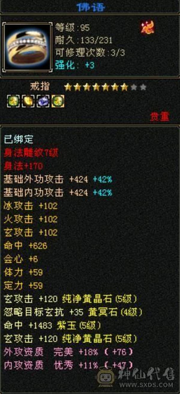5体5属5抗5命中5会心。6-7雕文(十三叔推荐)