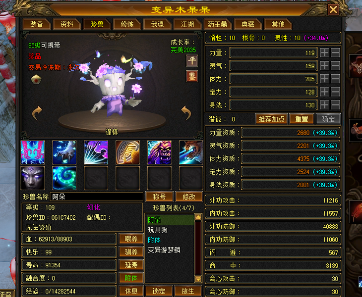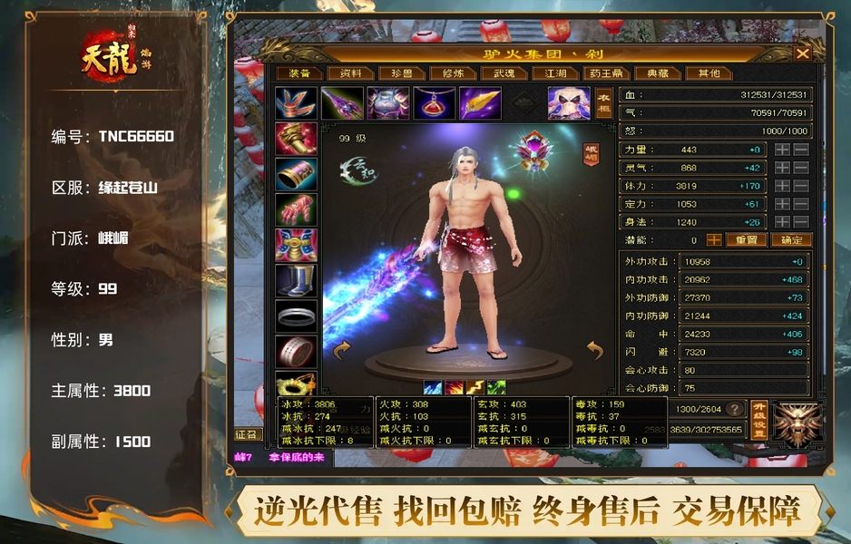 双排五级峨眉 满四减抗 3800冰属性 双十体力宝宝 附体已经10悟性 5灵性了 累冲2万多 可转天山或者武当 全网性价比最高 不议价便宜处理