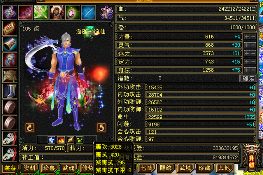 【TMH67557】 | 逍遥 | 等级:105 | 主属性:3028 | 副属性:250 | 男 | 主毒攻 | VIP0 | 畅游账号