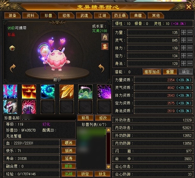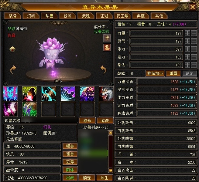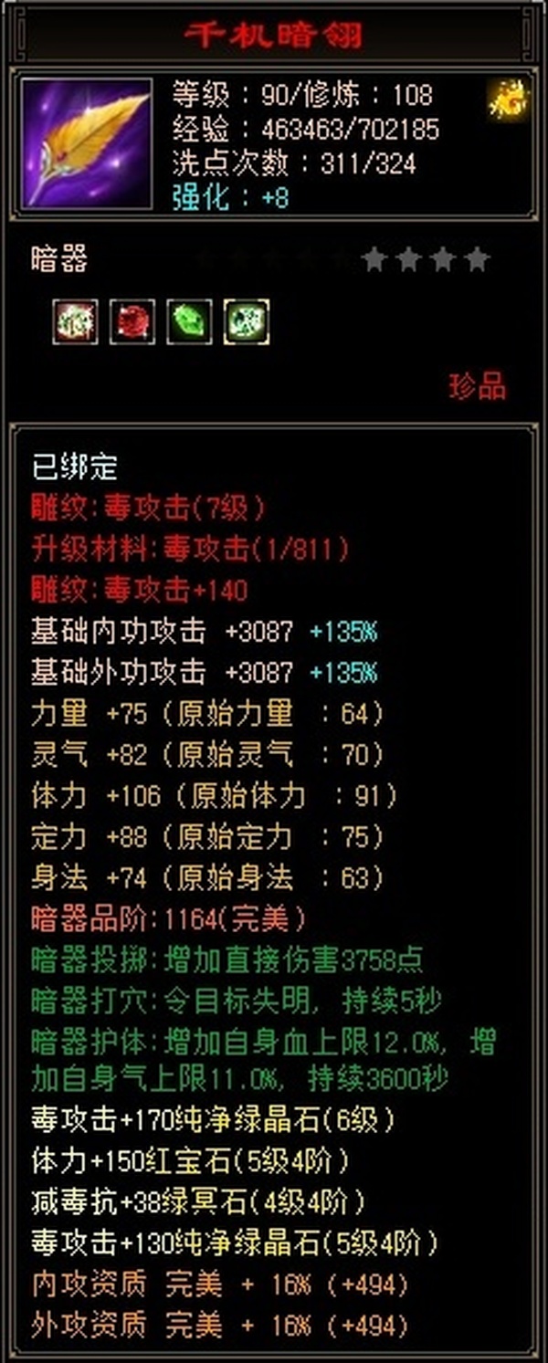 没开鼎状态,吃了一颗五级精华。开暗器护体34万血。