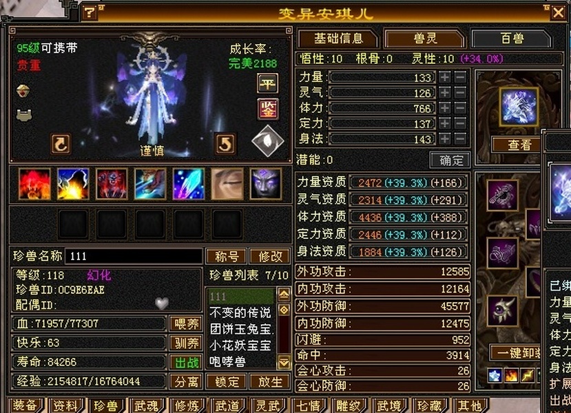 血45w 属性5100+ 仓库里一堆5级石头 一直没咋玩号太多了玩不过来