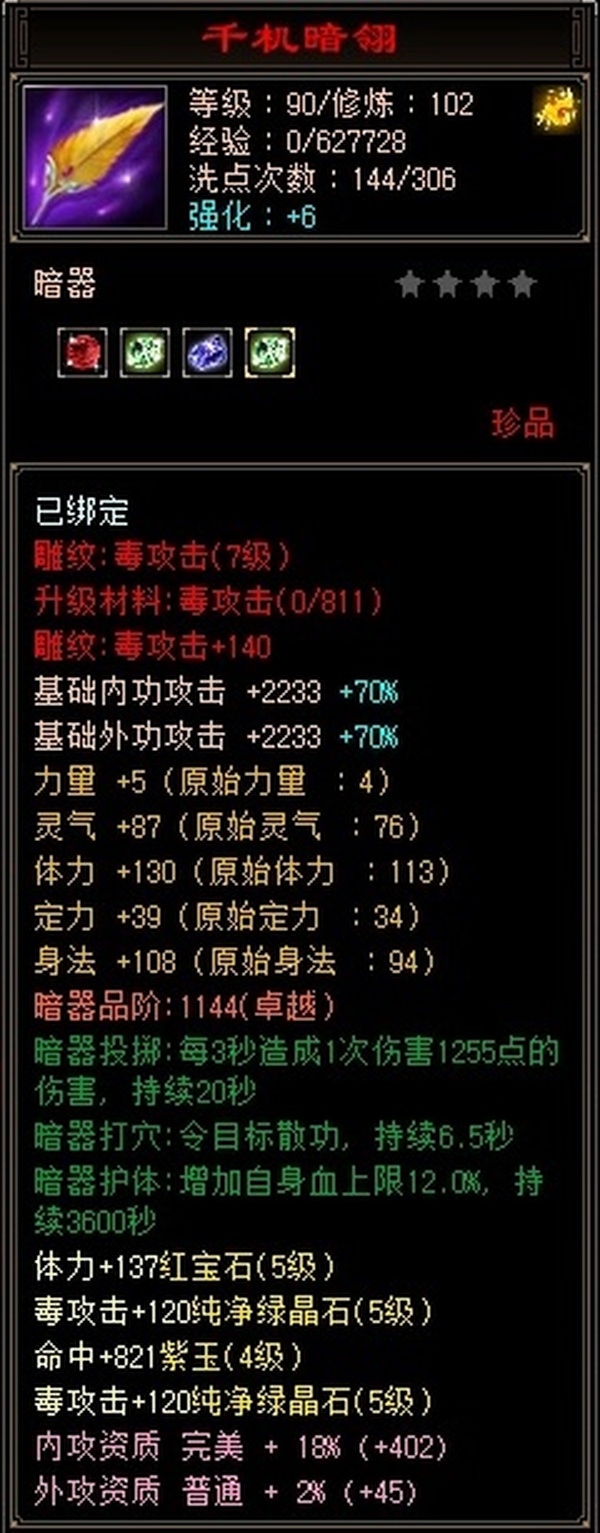 星宿 | 等级:102 | 主属性:3882 | 副属性:1894 | 男 | 主毒攻