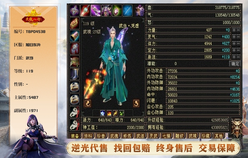 【TBP04538】 | 武当 | 等级:119 | 主属性:5487 | 副属性:1971 | 主玄攻 | VIP4 | 微信账号