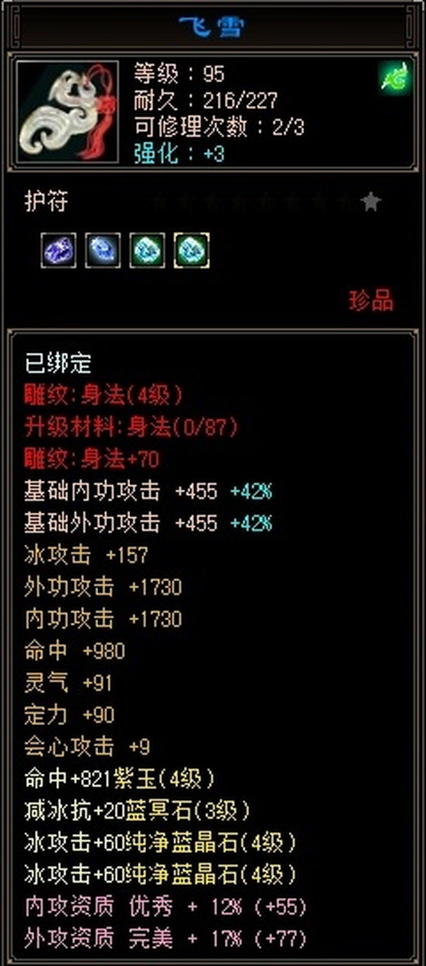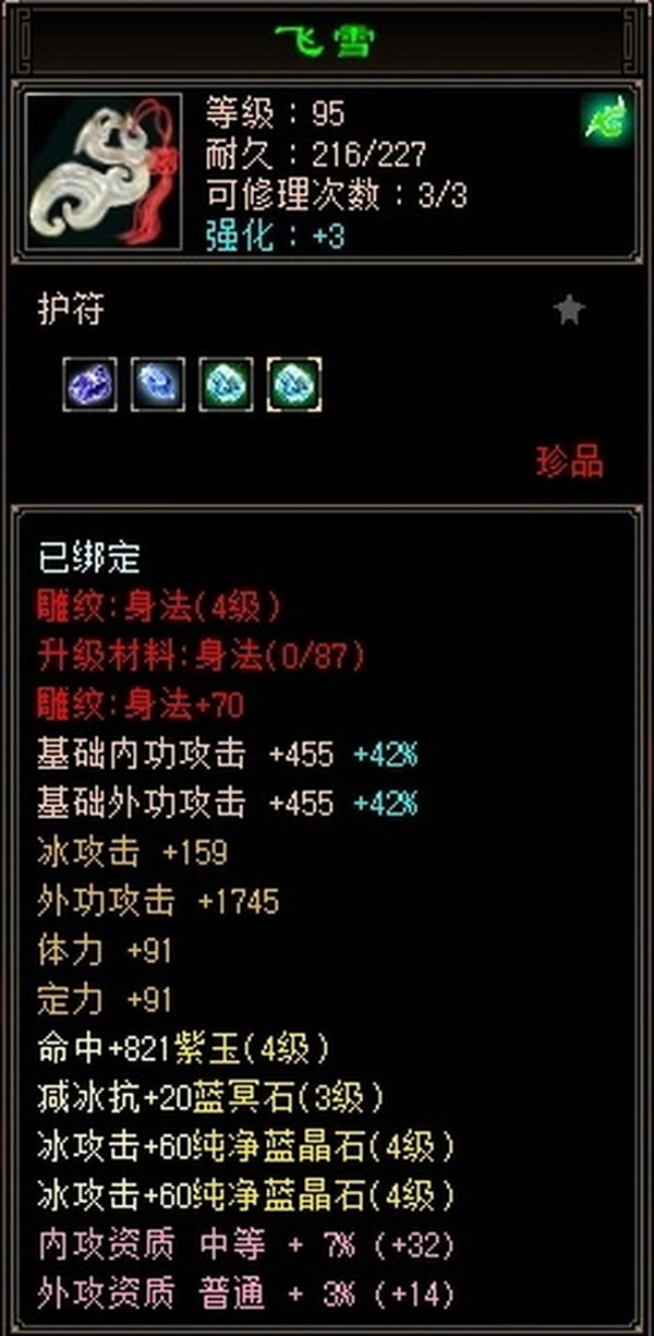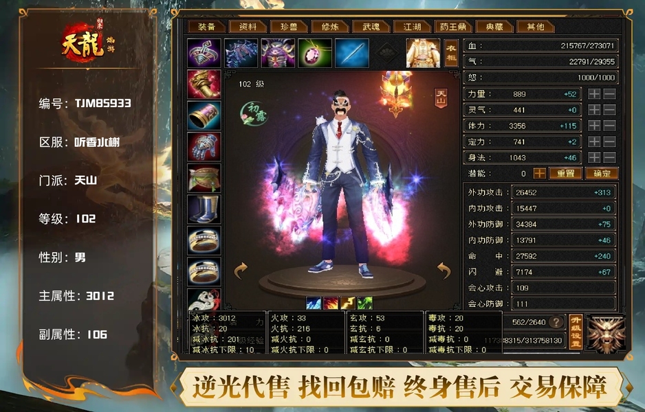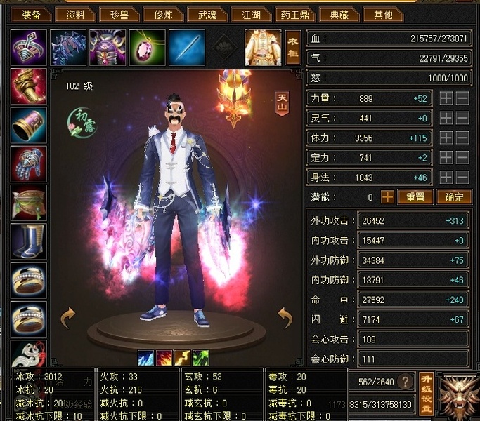 天山 | 等级:102 | 主属性:3012 | 副属性:106 | 男 | 主冰攻
