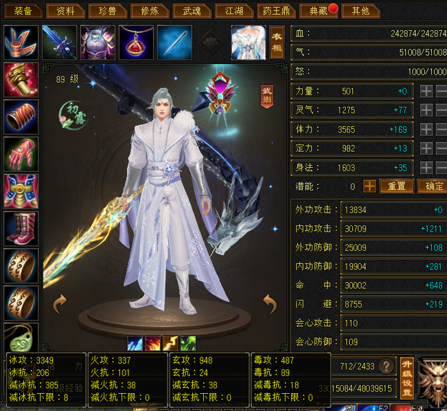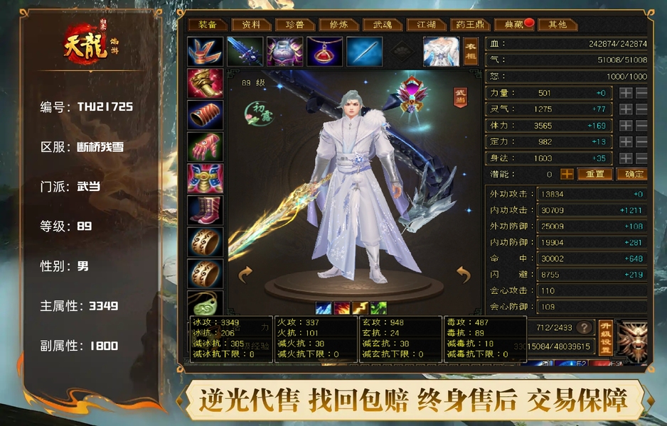 【THJ21725】 | 武当 | 等级:89 | 主属性:3349 | 副属性:1800 | 男 | 主冰攻