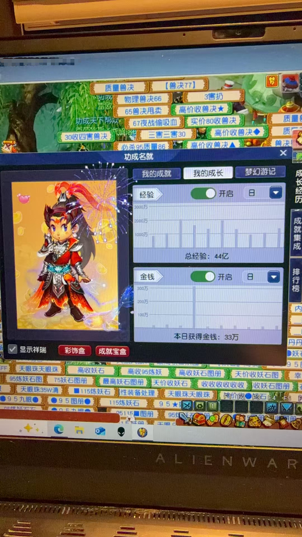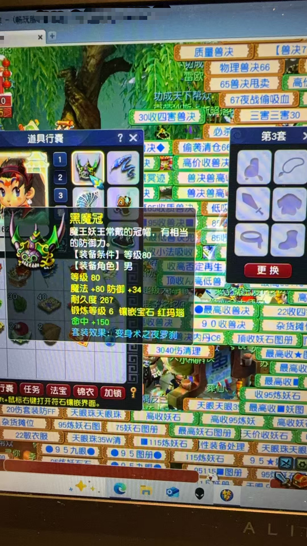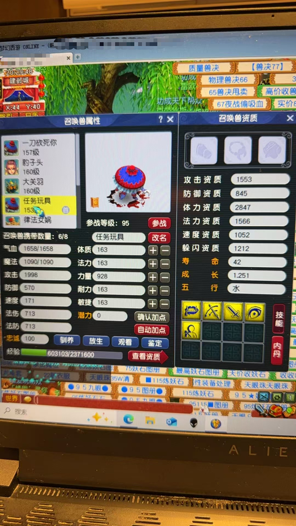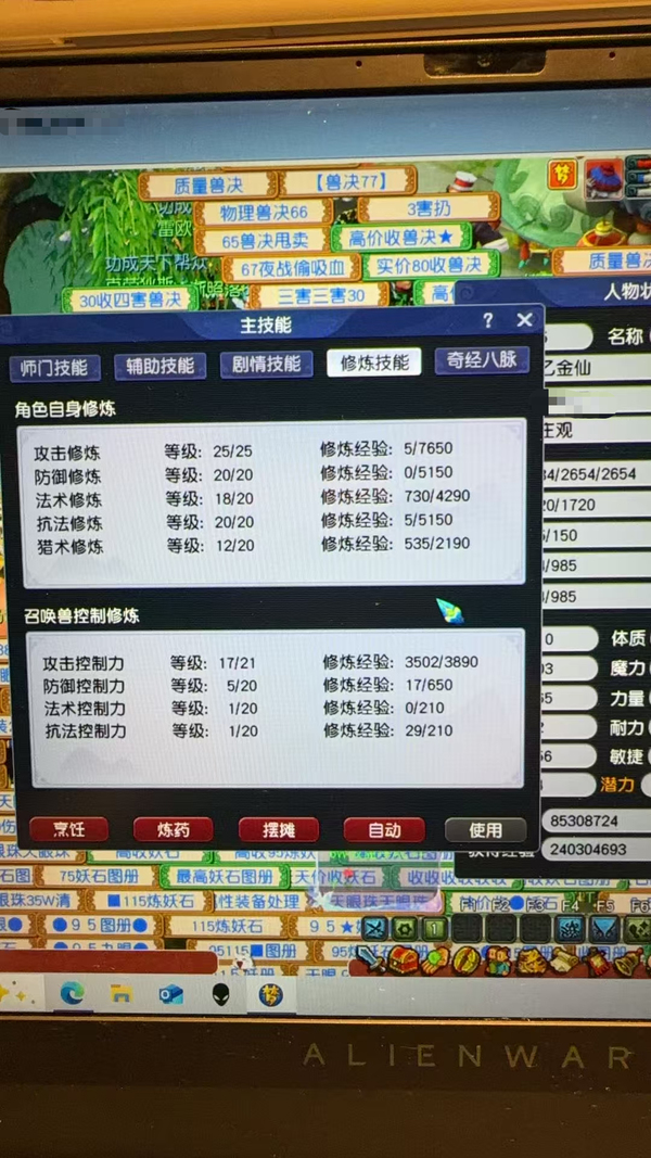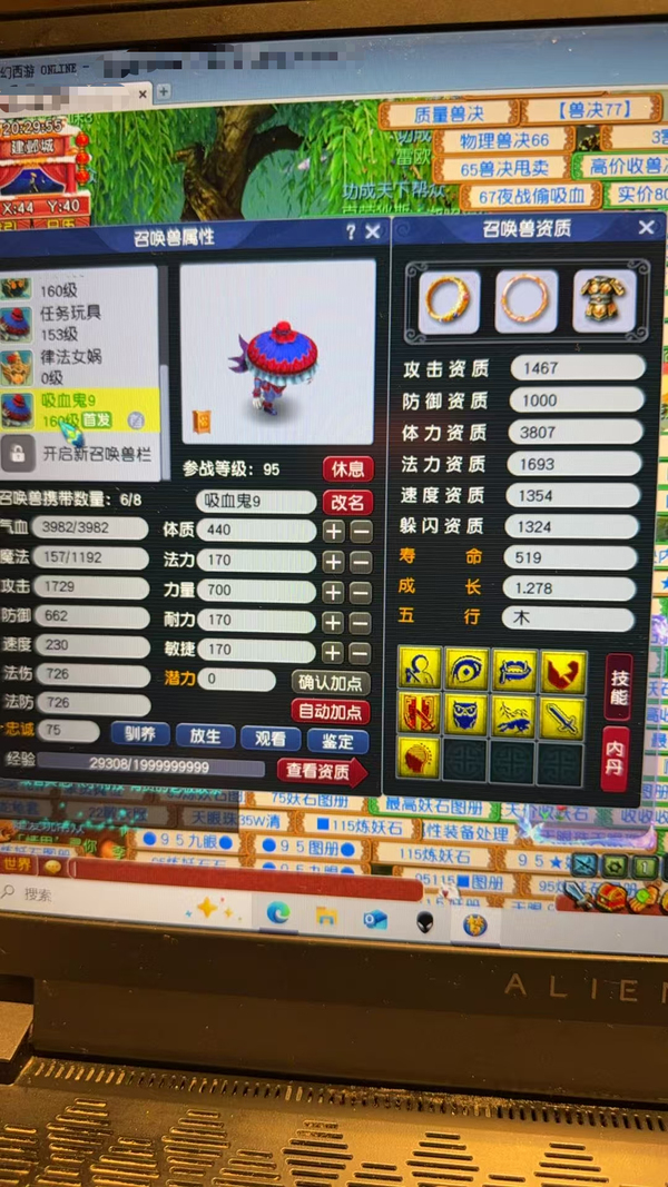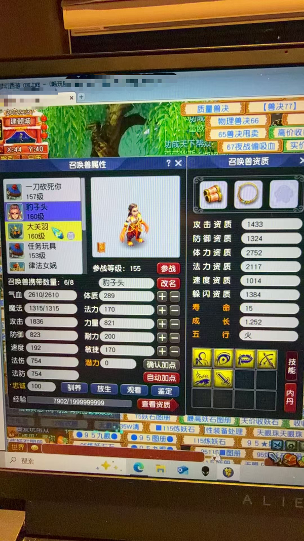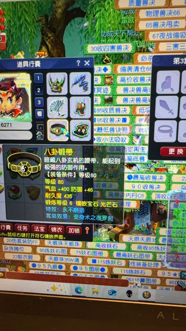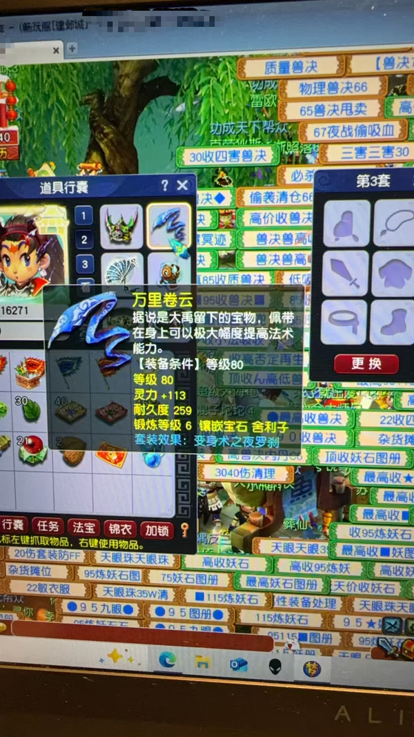 仓库还有物资大概1000元,夜罗莎套加小不磨武器上号直接玩.满技能满乾元丹三色鲲浮生绡+吕布都有.