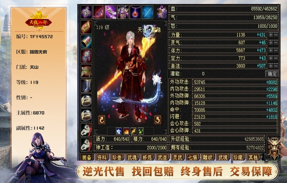 【TFY45572】 | 天山 | 等级:119 | 主属性:6870 | 副属性:1142 | 主冰攻 | VIP4 | 畅游账号