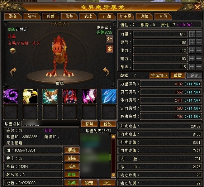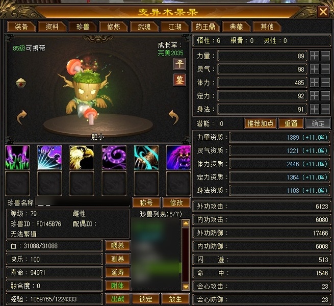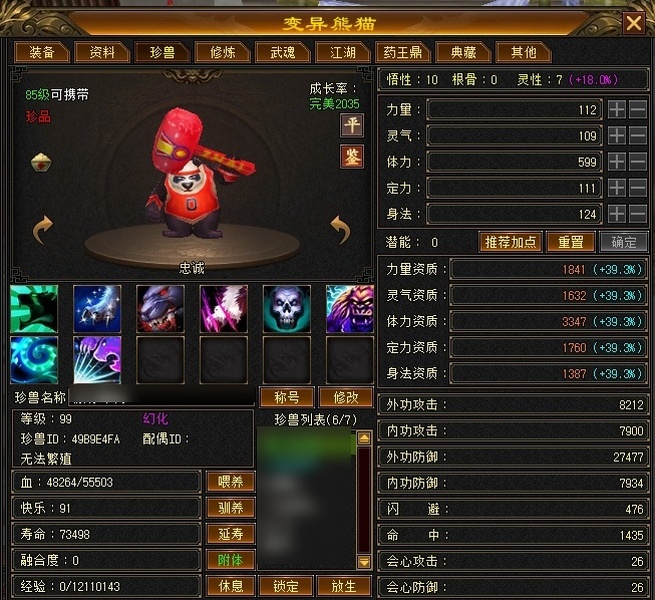 89卡级丐帮,主属3925,武魂865,会心175,32W血,毒属打架嘎嘎猛,买的就是情怀