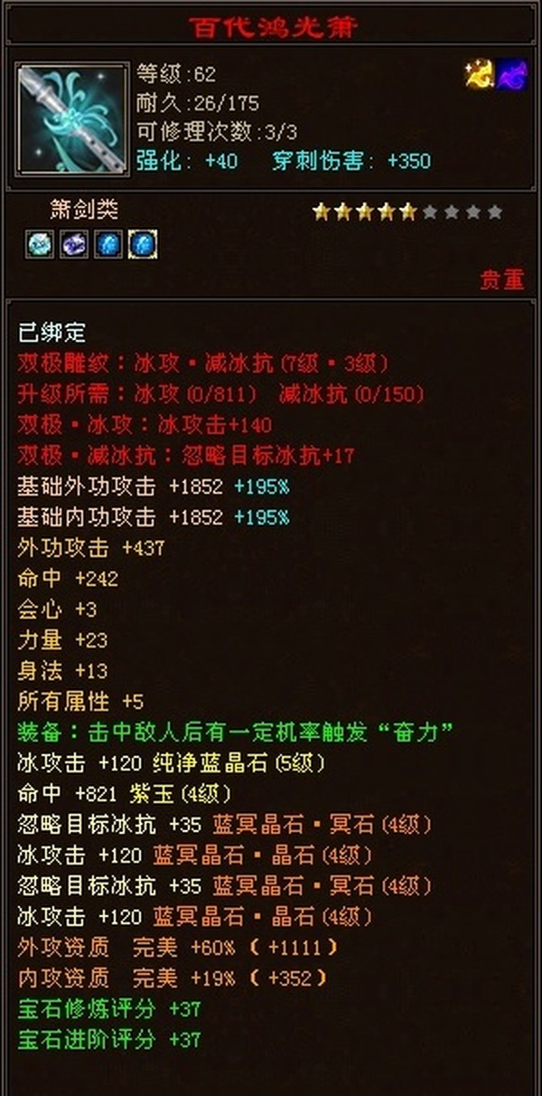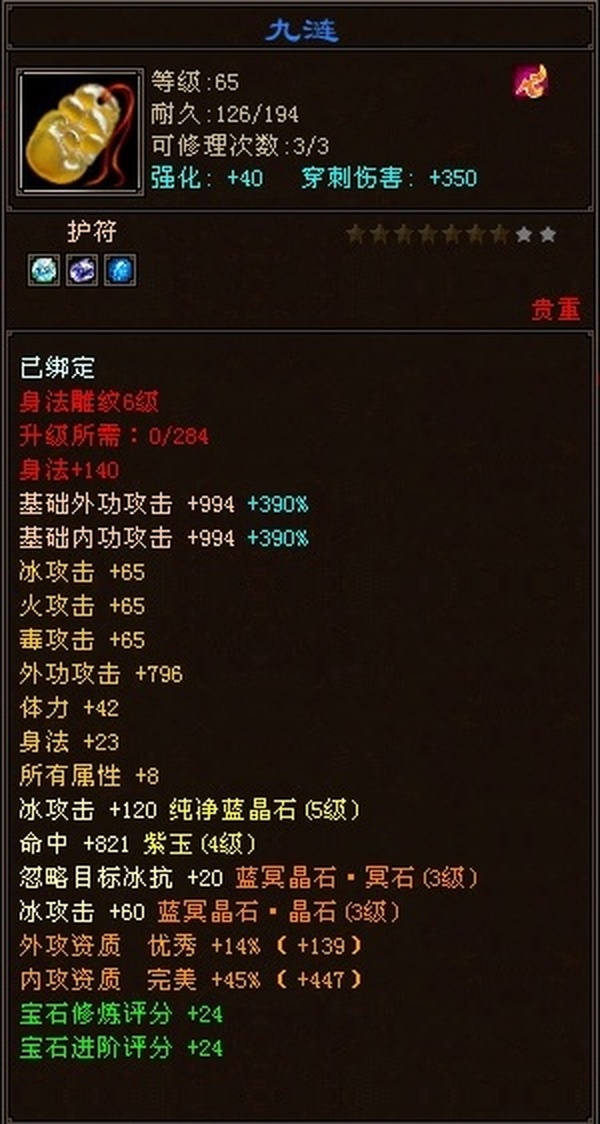 桃花岛 | 等级:69 | 主属性:4552 | 女 | 评分:107277 | 副属性:728 | 穿刺伤害:2800 | 穿刺减免:1584 | VIP8 | 【买号找回永久包赔】